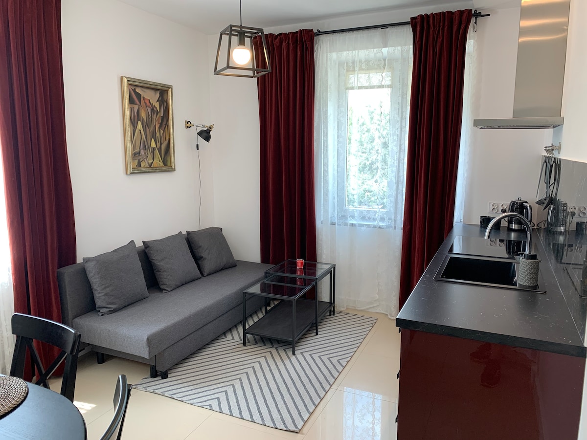 Ērts, pilnībā aprīkots dzīvoklis jaunajā ēkā. Dzīvojamā istaba ar atvērtu virtuvi, kas sadalīta ēdamzonā un atpūtas zonā. Guļamistabā ir liela gulta un plašs drēbju skapis. Ir arī iebūvēts skapis kā papildu glabāšanas vieta. Tuvumā ir veikali, restorāni un kafejnīcas Aprīkojums: gaisa kondicionētājs, espresso automāts, tējkanna, gludeklis, gludināmais dēlis, veļas mašīna Nokļūšana no Šopēna lidostas 20 min taksometrs 50 min saziņa no Modlinas lidostas 50 min taksometrs 120 min saziņa
