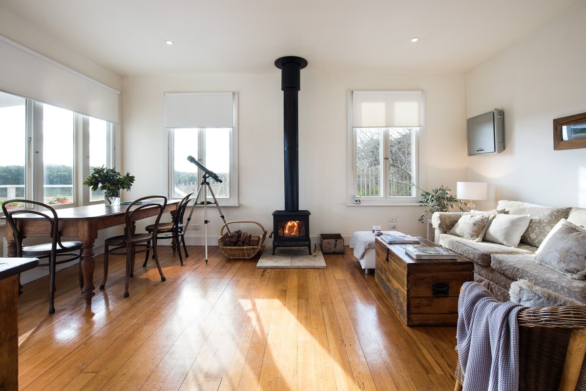 Harvest Cottage ir mierīga, stilīga kotedža ar vienu guļamistabu, kas atrodas starp skaistu dārzu, pakalniem, ganībām un vietējiem krūmājiem Viktorijas centrālajā daļā. Tas ir piepildīts ar izsmalcinātiem Ketrīnas Freemantles botānikas un ainavu mākslas darbiem, malkas ugunskuru un ekskluzīvām mēbelēm, kas padarīs jūsu uzturēšanos neaizmirstamu. Pēc pieprasījuma piedāvājam arī vairākas ziedu un mākslas darbnīcas. Mēs esam akmens metiena attālumā no Djuwangbaring taku tīkla. Kosgreivas takas posms atrodas 2 minūšu brauciena attālumā.