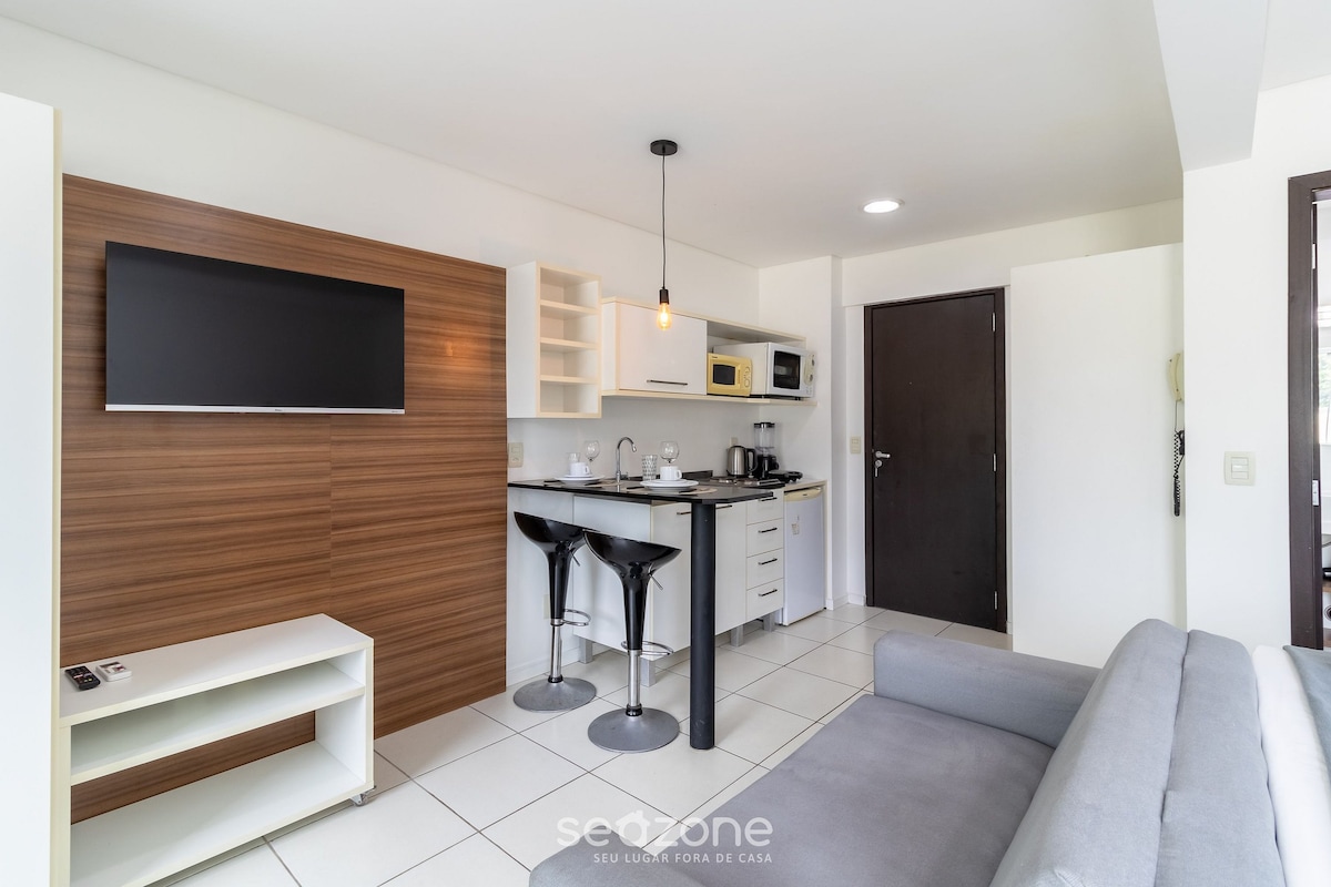Izsmalcināts studijas tipa dzīvoklis, kas atrodas 800 m attālumā no Vila Germânica parka tādiem pasākumiem kā Oktoberfest. Apkārt ir restorāni, bāri un lielveikali. Viss jūsu komfortam: Smart TV 50" Samsung, split gaisa kondicionētājs, gāzes duša, Wi-Fi šķiedra 240 mb, virtuve ar Brastemp ledusskapi, mikroviļņu krāsns, cepeškrāsns, plīts, kafijas automāts, ūdens attīrītājs, veļas mašīna un žāvētājs, drēbju skapis un, protams, aicinoša divguļamā gulta ar labāko matraci!