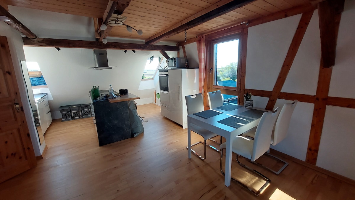 Šis apm. 37kvm lielais, mājīgais dzīvoklis ir atjaunots ar lielu mīlestību un daudz dabīgiem celtniecības materiāliem, lai nepazustu šarms, ko var izstarot šāda veca māja. Tas piedāvā viesiem mājīgu atmosfēru idilliskā dārza paradīzē. Bezmaksas autostāvvieta ir pieejama tieši mājas priekšā. Iespējams iznomāt arī velosipēdus. Tuvākajā apkārtnē ir dažādas iepirkšanās iespējas, un tās atrodas gājiena attālumā.