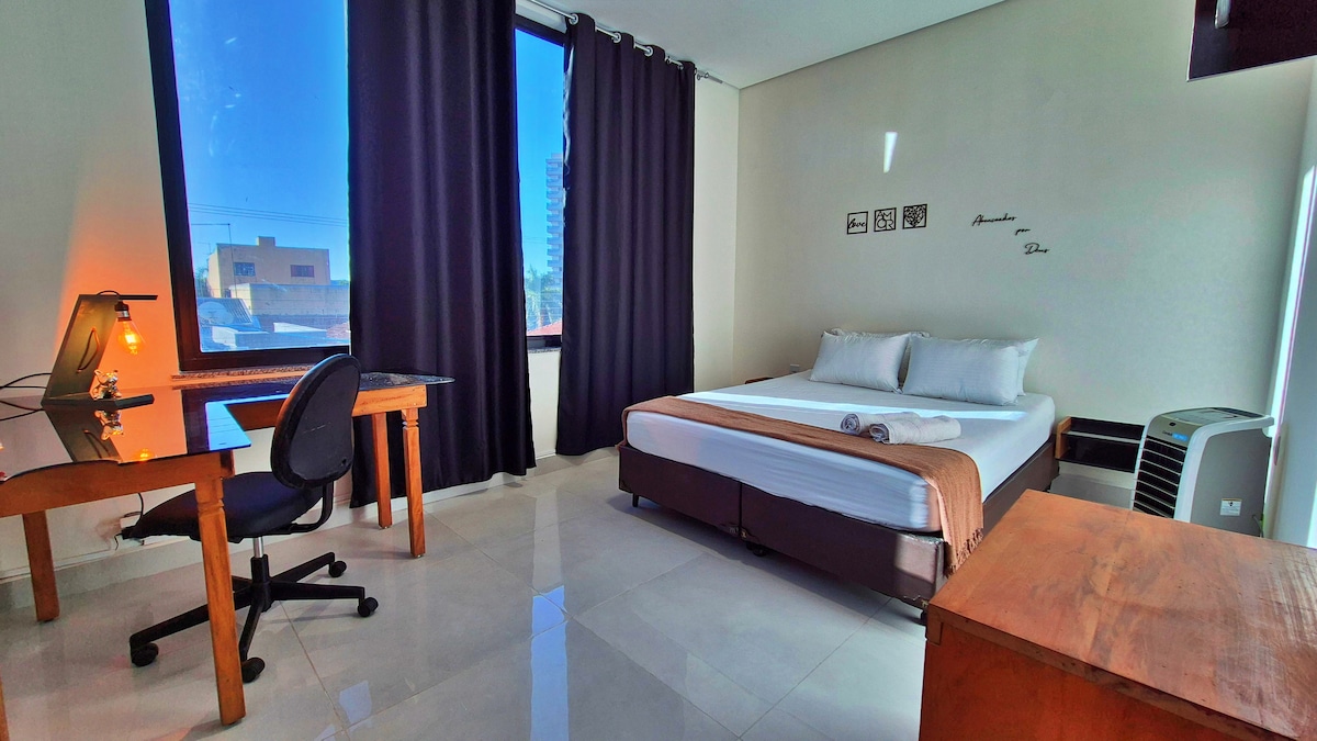 jūsu ceļojumam iekārtota vieta ir viena vai arī jūsu ģimene, draugi, darba komanda var uzņemt līdz 4 cilvēkiem, kas atrodas tikai 6 km attālumā no Sorokabas lidostas (Embraer) 18 km attālumā no Aramar, vienkāršā un ģimenes daudzdzīvokļu namā 15 min attālumā no pilsētas centra un 20 min attālumā no pilsētas galvenā finanšu centra, atrodas vienkāršā daudzdzīvokļu namā ar diennakts vārtiem, apkaimē ir visa infrastruktūra un veikali Atgādinājums! Budžeta plānošanas laikā norādiet kopējo viesu skaitu.