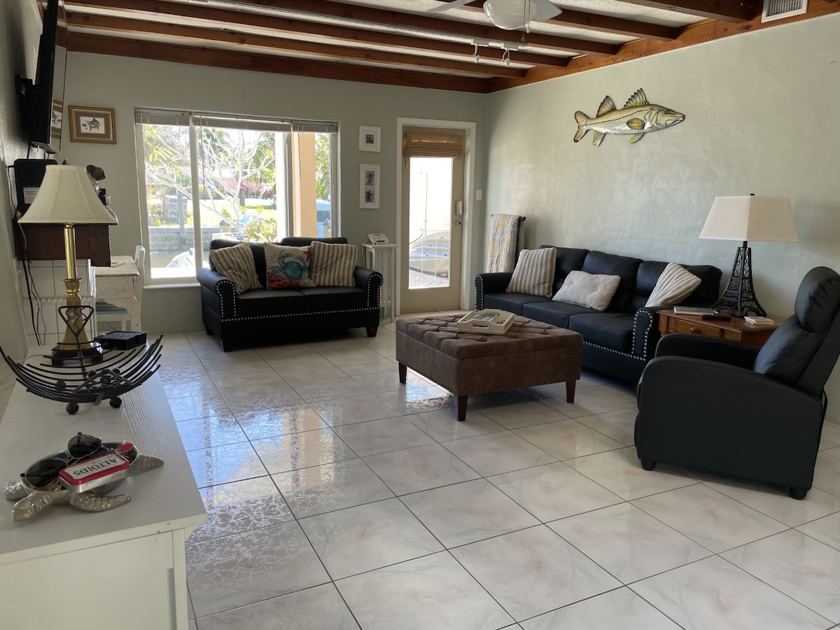 Jaunumi: 2022. gada septembrī mūs ietekmēja viesuļvētra Īens. Mūsu dārgajā kotedžā bija nedaudz vairāk nekā 5 pēdu plūdi. Esam nenogurstoši strādājuši, lai visu saliktu kopā. Visas jaunās flīzes, sienas, elektrība, apgaismojums, mēbeles, un mēs pat uzlabojām vannasistabu! Plaša tropu māja ar skatu uz ūdeni no mūsu pagalma lanai. Laivu piestātne ar tīrīšanas zivju staciju, skaisti saulrieti ar zivju lēkšanu mūsu kanālā. Jauna liela virtuve un viens kvartāls no mākslas galerijām, restorāniem un bāriem.