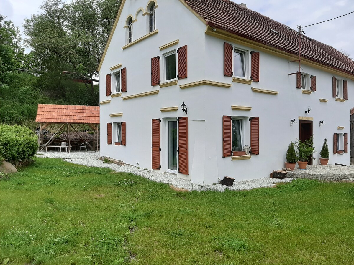 laipni lūdzam Lejas Silēzijas sirdī, jūsu mājoklis ir tālu no mājām! Vienā no mūsu unikālajiem dzīvokļiem. Izbaudiet izjādes ar zirgiem, ponijus, vagonus. Vakari pie ugunskura/grila. Izpētiet nelielo privāto mežu. Peldēšanas ezers Berzdorfersee tuvumā. Svaigi produkti no dārzeņu dārza. Dabiska, mierīga vide, kas piedāvā mieru un brīvību ģimenēm un bērniem. Mēs esam austrāliešu ģimene, un sveicam jūs mūsu dabas un vēsturiskajā īpašumā. atrodas centrā līdz trīs robežām DE CZ PL.