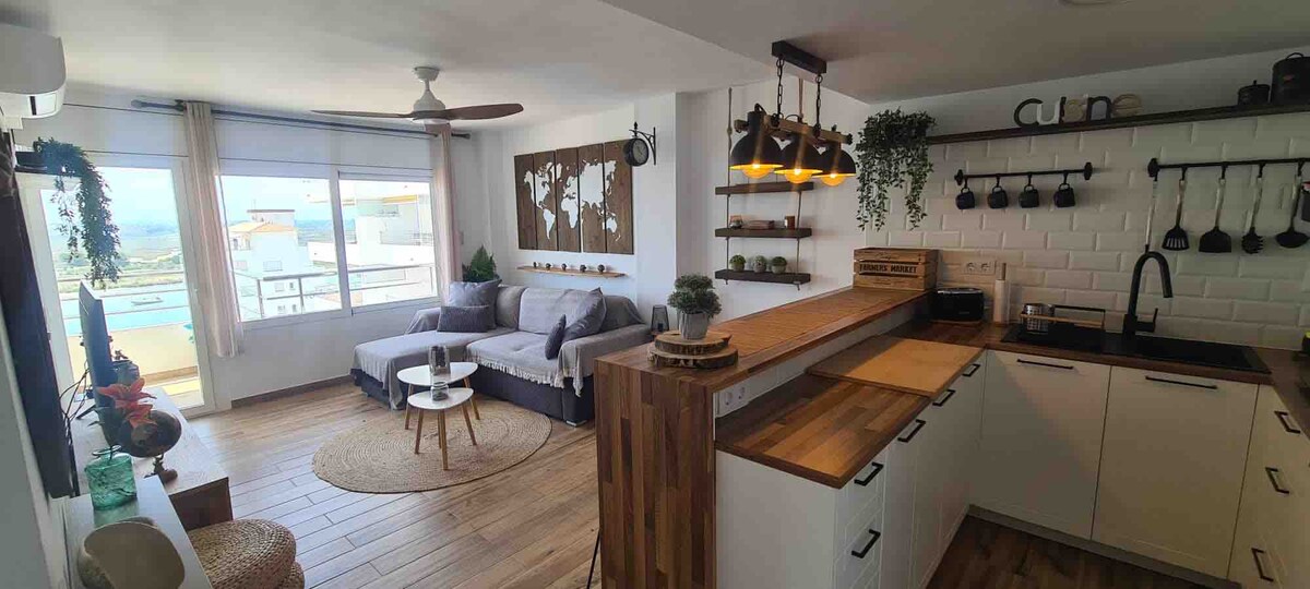 Klusa penthauss Sant Pere Pescador vecpilsētā. Liela terase ar skatu uz Fluvià upes birzi, pieskaroties dabas parkam dels Aiguamolls. Tajā ir grils, atpūtas zona un āra duša. Autostāvvieta vienas minūtes attālumā. Lielveikali, iepirkšanās zona,aptieka, restorāni un visas papildērtības. Tieši blakus upei un Sant Pere ostai, kur varat nodarboties ar kajaku vai izbraucienus ar velosipēdu. Pludmales tikai dažu minūšu attālumā , netālu no skaistiem līčiem L'Escala, St Martí d Empuries vai Roses.