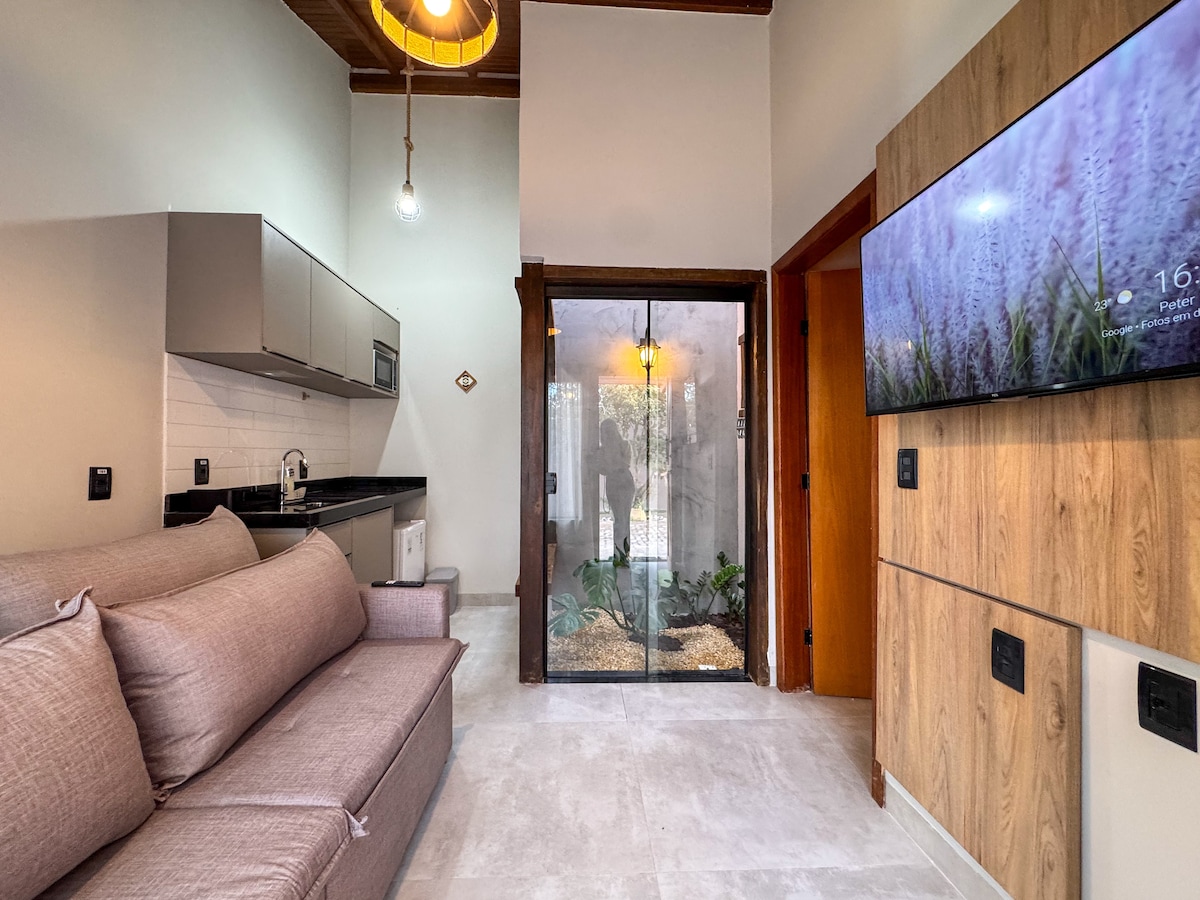 Unit Bacuri - Apto 01/Térreo Casal Box guļamistaba - Sofa divguļamā gulta -Cozinha compacta un virtuves piederumi; indukcijas plīts, mikroviļņu krāsns, ledusskapis, elektriskā tējkanna un kafijas automāts ar kapsulām. Pilns - WC -SmartTV, ēdamgalds. - Komoda 2 pieaugušie un 2 bērni - Vannasistabas, gultas un vannasistabas komplekts -Aniente todo Climatized - Pārnēsājama (mazuļu) un pārnēsājama vanna Pēc iepriekšēja pieprasījuma un pieejamības. - Dekorēta ieejas zāle (koplietošanas telpa) - Privāta autostāvvieta