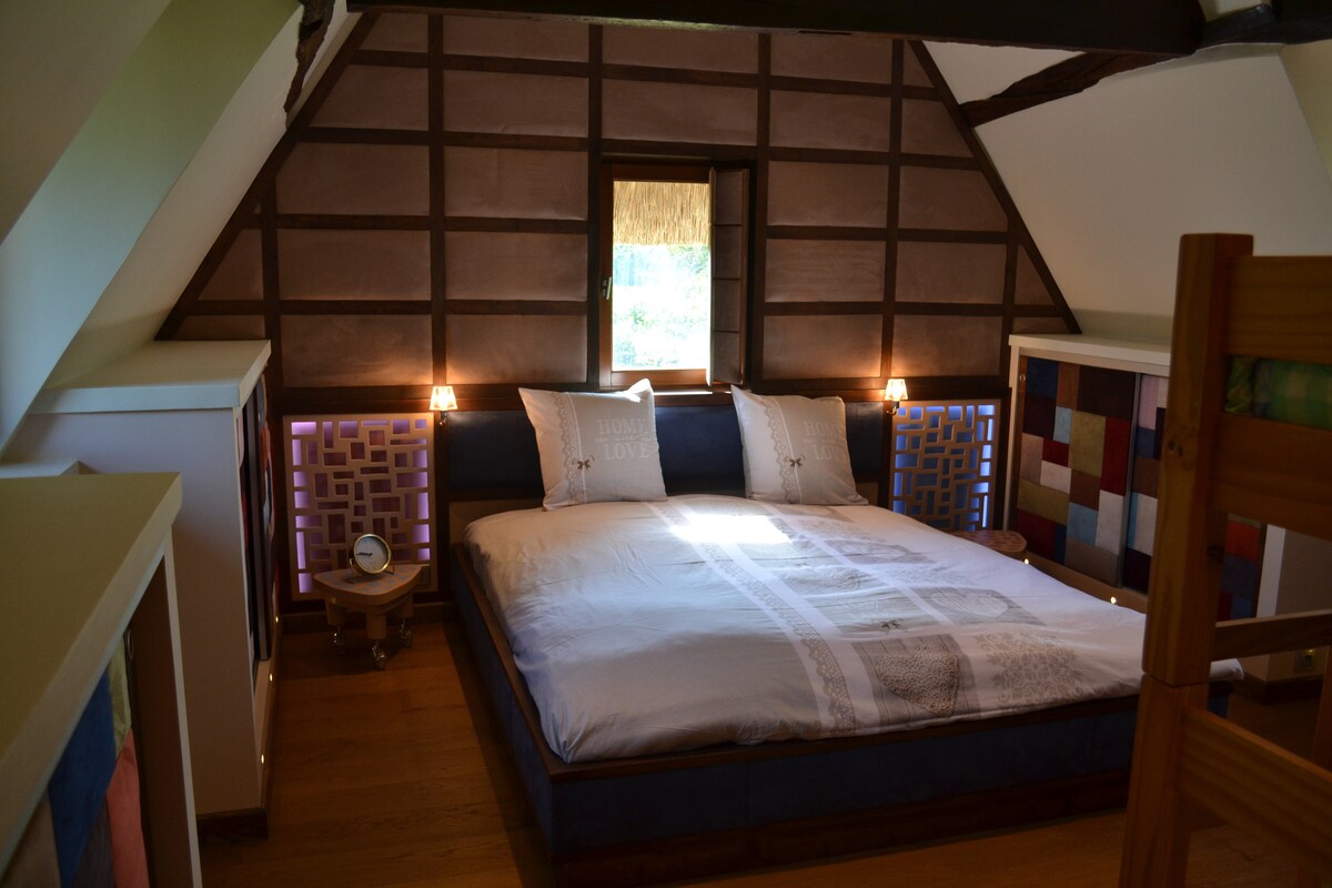 Skaistā ielejā, laukos, burvīgā pilsēta Pont-Audemer atrodas 4 km attālumā. Mūsu lielā bēniņu studija 60m2 platībā ir ērta un labi iekārtota ar lielu viesistabu, atvērtu virtuvi, dušas telpu un atsevišķu tualeti, ieeju. Apgaismots ar 4 velux, 2 logiem, franču logs atveras uz lielu balkonu. Viesi var droši novietot automašīnu mazliet apgaismotā autostāvvietā, kas ir slēgta ar elektriskajiem vārtiem. Jūsu rīcībā ir dārzs.