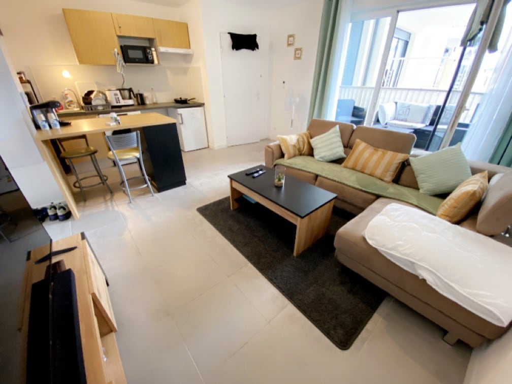 Ļoti jauks T2 50 m2 pirmajā stāvā ar terasi, gaiši renovēta, atrodas Boulevard de la Corniche 15 minūšu gājiena attālumā no Thermes vai pilsētas centra un 20 minūšu attālumā no ostas Thonon. Dzīvoklis sastāv no vienas guļamistabas apartamentiem ar 160 cm divguļamo gultu, ģērbtuves, vienas vannas istabas ar vannu, veļas mašīnu, fēnu, atsevišķas tualetes. Pilnībā aprīkota virtuve ir atvērta ērtai ēdamistabai. Dzīvojamā istaba nodrošina piekļuvi terasei.