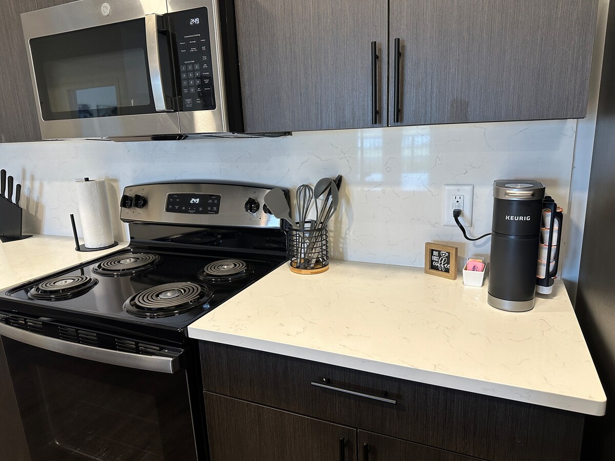 Laipni lūdzam jūsu pirmā stāva luksusa atpūtā Vitstaunā, IN! Šis modernais 1BR dzīvoklis jaunuzceltā kompleksā apvieno komfortu un ērtības. Izbaudiet mājīgu divguļamo gultu, papildu piepūšamo matraci, ātru Wi-Fi, viedtelevīziju ar Prime un YouTube un īpašu darba vietu. Tā atrodas netālu no populārākajām iepirkšanās vietām un modernām maltītēm un ir ideāli piemērota darījumu braucieniem, nedēļas nogales atpūtai vai ilgtermiņa rezervācijām. Stilīgs, mierīgs un ideāli piemērots - viss, kas nepieciešams mierīgai atpūtai, ir tepat.