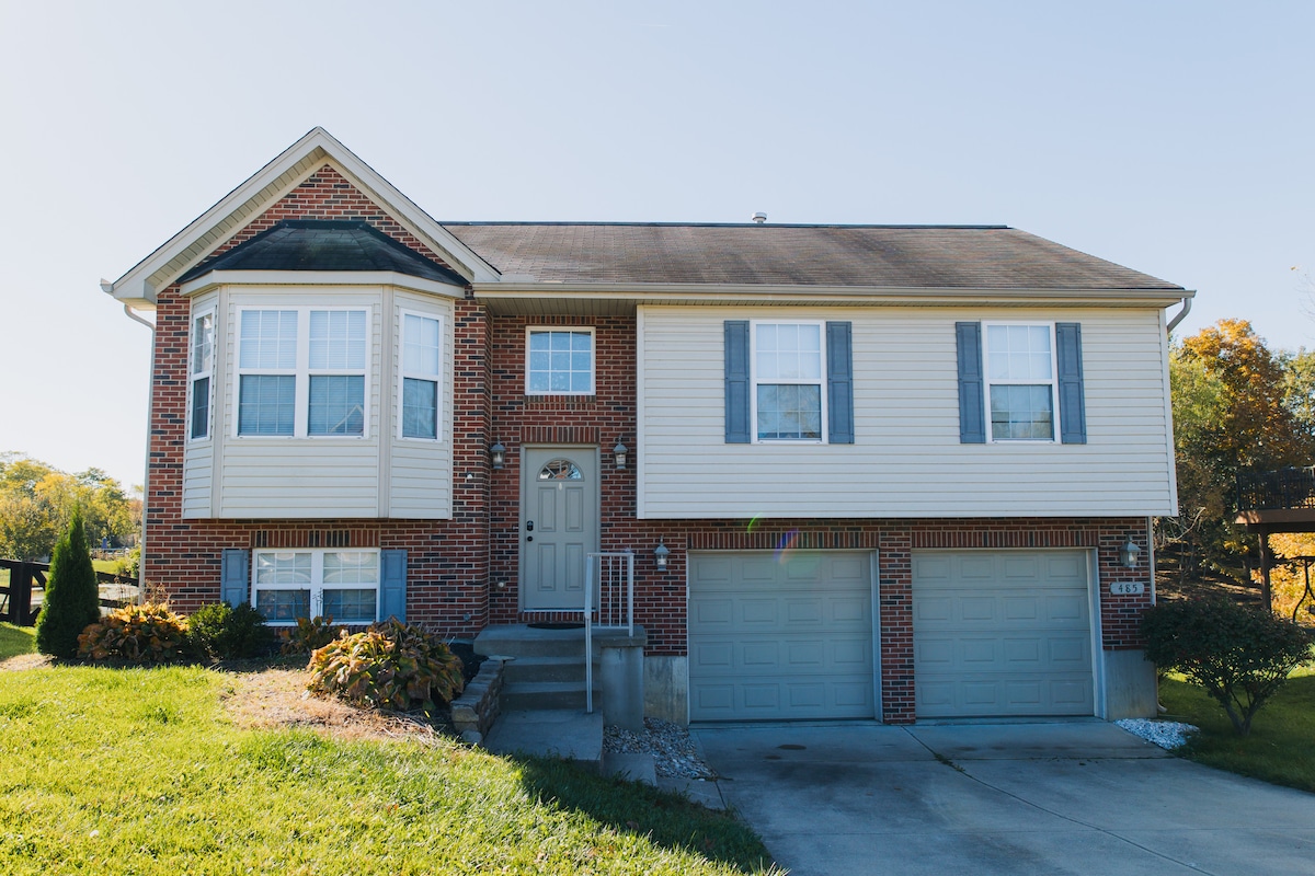 Spacious 3800 sq ft vacation home w/5 bedrooms each w/smart tv. 7 beds-2 king, 3 queen, & 2 twin, 3 1/2 bath. 5 miles Turfway Park/Florence Freedom/World of Golf/St Elizabeth Hospital, Boone County Distillery, Planet Fitness, about 10 miles Cincinnati/Kentucky Airport/Big Bone Lick, 15 miles Cincy Reds/Bengals/FC Cincy/Heritage Bank arena/Newport Aquarium/Creation Museum, Findlay Market/Hard Rock Casino, 20-25 miles Riverbend/Xavier/Univ Cinti, Zoo, Ark Encounter/Jungle Jims, 70 miles Keeneland.