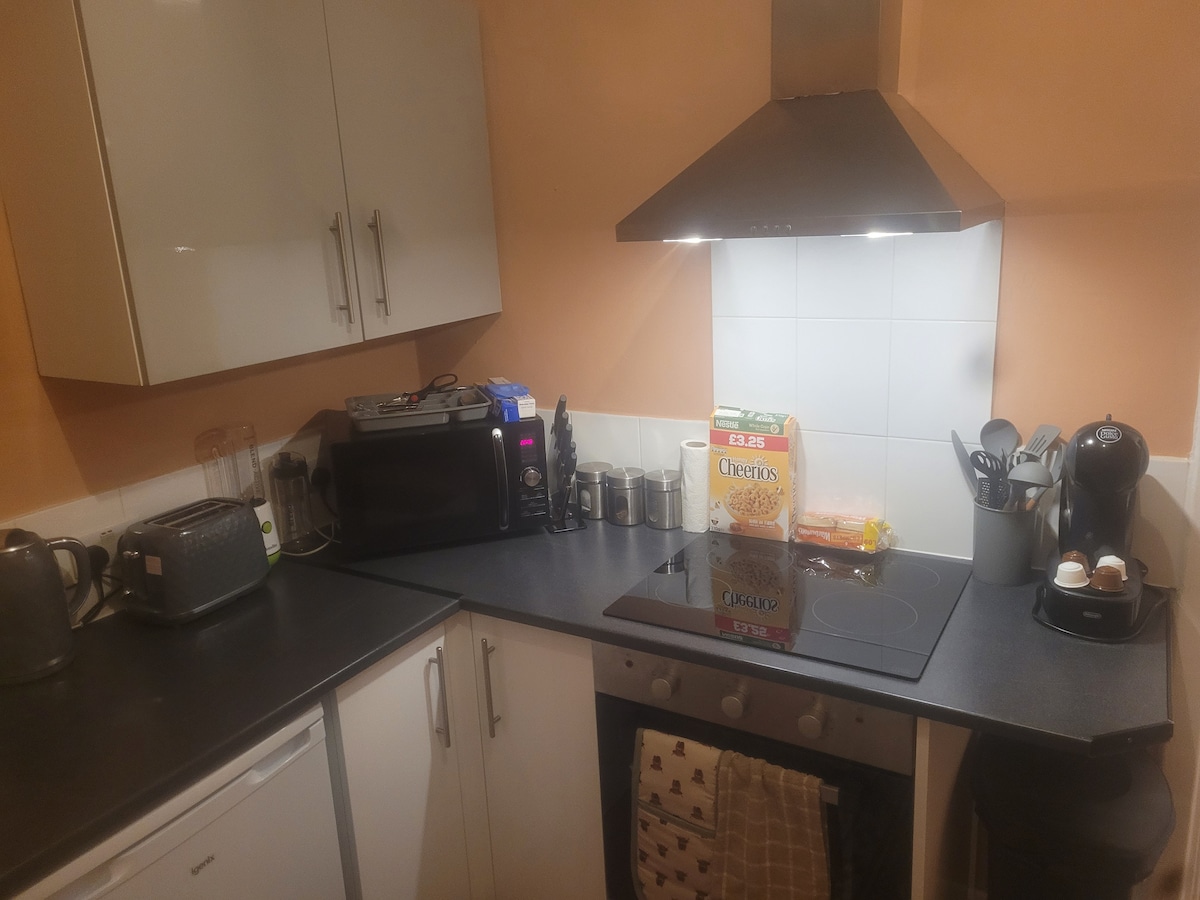 original solid wood floorboards- freshly varnished fully equipped kitchen (except theres no washing machine at the moment till I can get a counter top one due to no space for an under counter unfortunately but there is a laundrette 5min drive onto Aigburth Road Brand new apartment just been set up and added to Airbnb and is my first of many to come hopefully 1 double bedroom 1 single bedroom 1 small sofabed (suitable for small child only) 1 double sofa bed max 5 adults and 1 small child