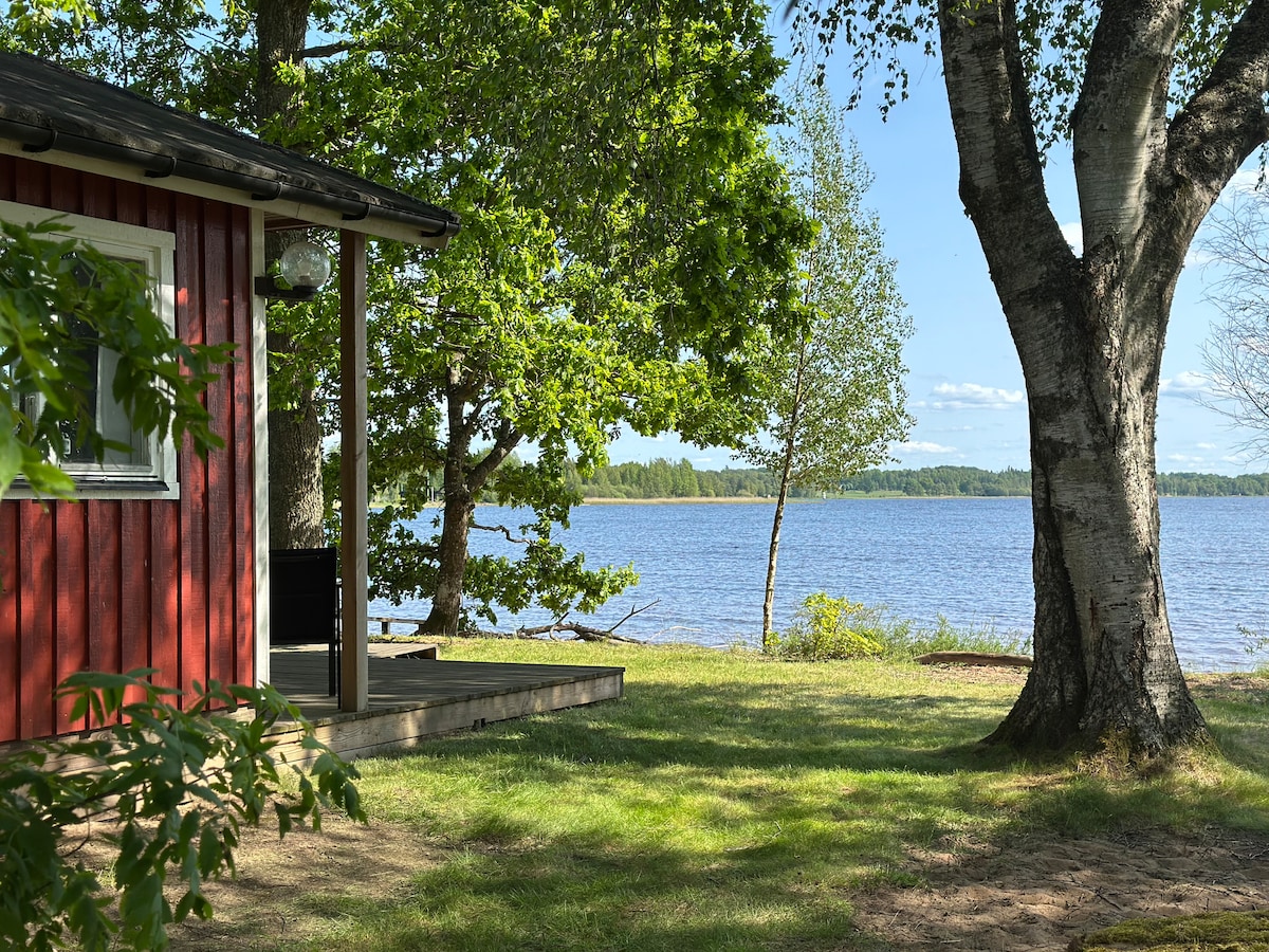 Sjöstugan- vår pärla precis vid sjökanten! Eget hus med sovloft, kök, vackert stort rum med braskamin och utsikt över sjön. Vedeldad bastu med dopp i sjön precis intill. Spabad på bryggan- alltid varmt. Badbrygga 5 meter utanför dörren. Tillgång till båt. Om ni vill köpa fiskekort, kontakta värd. Ved till baskamin och bastu ingår. Gården är inhägnad hela vägen till sjön och vår Beagel hund Vide är ofta lös ute. Han är snäll. Lakan, handdukar och städning ingår.