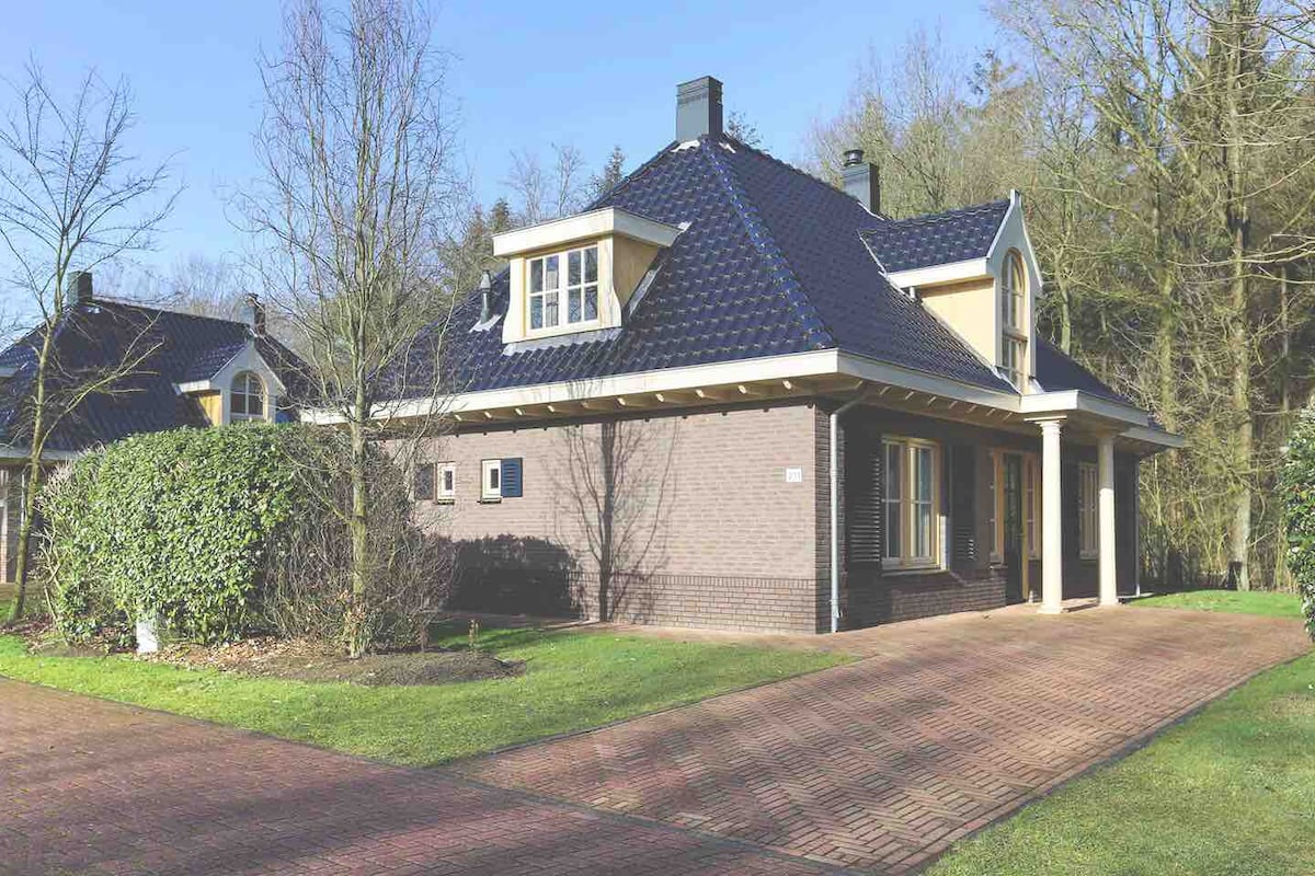 8 Pers. Ruime luxe vrijstaande villa grenzend aan bosrijke omgeving en natuurgebied met tuin en veel privacy. Voorzien van ruime zit-woonkamer met open keuken met alle voorzieningen. (vaatwasmachine, koel/diepvrieskast, 4 pitsgastoestel/Magnetron/Flatscreen TV/Radio/Houtkachel etc) Bijkeuken met CV, wasmachine en droger. 1 Slaapkamer met badkamer en Toilet. Bovenverdieping. Ruime badkamer/Douchecabine/bad/toilet/infraroodsauna en wasbak. 2 slaapkamers 1 met Flatscreen TV en Netflix + 4e Toilet