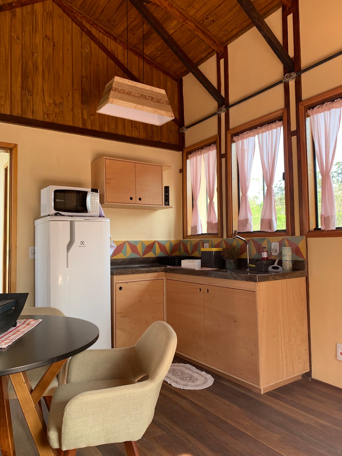 Mēs uzbūvējām šo kalnu namiņu uz savas mājas Vila Ecológica Santa Rita, pašā Demetry sirdī, Botucatu-SP. Projektu izstrādāja Bioarquitet Tomaz Lotufo. Mēs izmantojam mežus un nojaukšanas ķieģeļus, un Mariana Cintra, mēs paši un Athias komanda Mēs uzbūvējām no koka sienas ar nevainojamu apdari! Klusa atrašanās vieta, aprīkota virtuve, guļamistaba ar divguļamo gultu, privātā āra vannasistaba, kas piestiprināta pie mājas, balkons ar saulrieta skatu, cerrado mežs un ekoloģiskā taka.