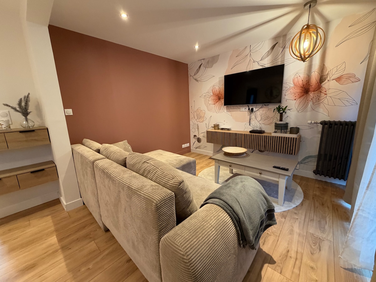 Pilsētas māja, 48 m2 2 cilvēkiem, iespējams 4. Atrodas Rezē, Hôtel de Ville rajonā Tuvu transports (lidosta, tramvajs, autobuss, biklo). 10 minūšu attālumā no Trentemoult Atjaunots, tas piedāvā viesistabu/virtuvi ar dīvāngultu. Virtuve ir pilnībā aprīkota. Jums patīkama viesistaba un ēdamzona. Augšstāvā atradīsiet plašu guļamistabu ar biroja zonu. Blakus ir dušas telpa. Bezmaksas autostāvvietas uz ielas. Ir palagi un dvieļi