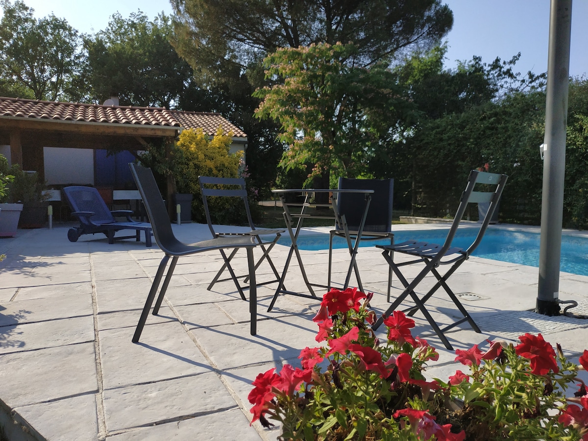 klusa studija 35 m2 + mezonīns 12 m2 platībā ( bērniem) ar gaisa kondicionētāju, kas aprīkots ar lielu terasi un dārza mēbelēm , džakuzi zonu, pétanque laukumu un galda tenisa galdu + lielu zemes gabalu, drošu autostāvvietu. Aprīkota virtuve, elektriskā plīts, kombinētais ledusskapis, mikroviļņu krāsns, veļas mašīna, kafijas automāts, tosteris un pamata virtuves komplekts. Nakts zona pirmajā stāvā ar gultu 160, TV kanāli TNT - iekļauts Wi-Fi. Piešķirta ekskluzīva baseina un džakuzi izmantošana.