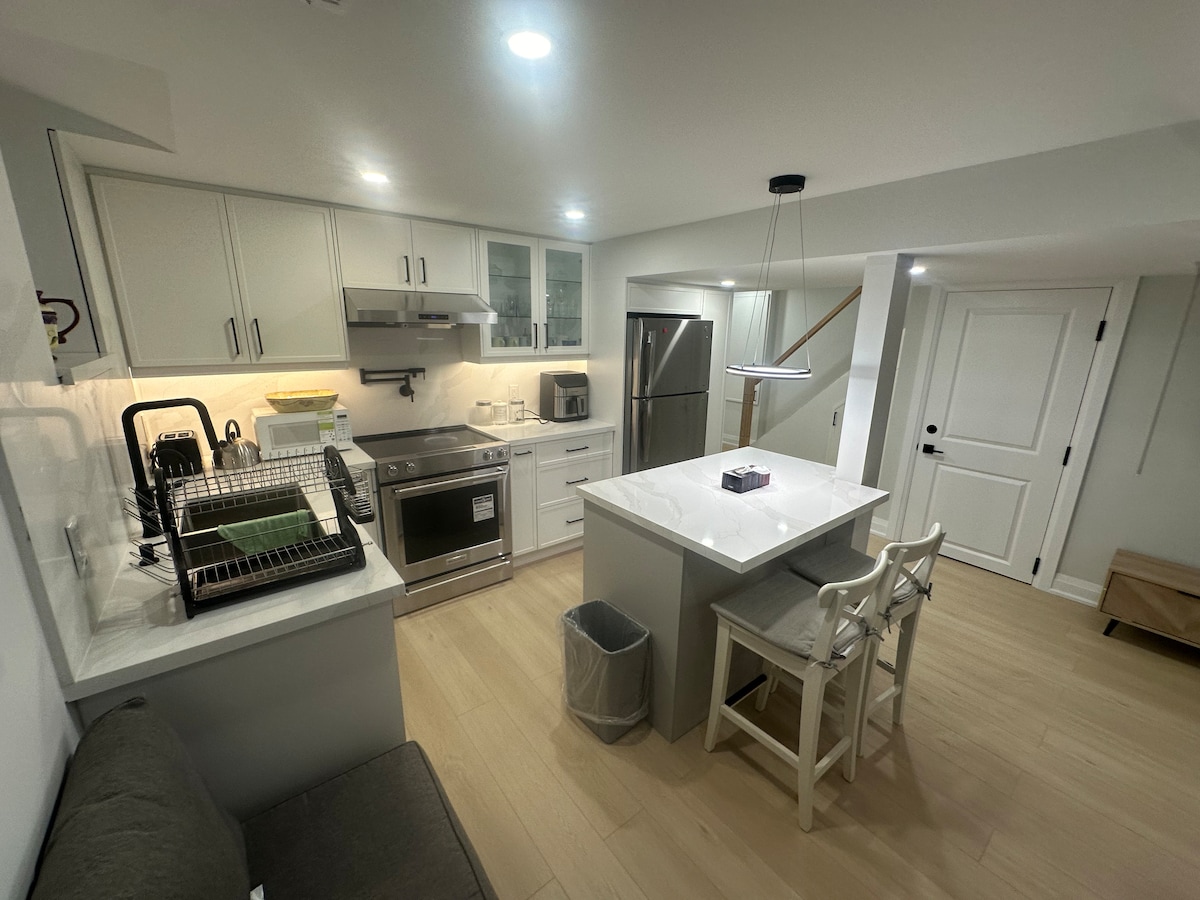 **Ballītes vai pulcēšanās nav atļauta** Tikko atjaunots, liels, plašs un mājīgs dzīvoklis 10 min attālumā no lidostas. Pavisam jauna virtuve, vannasistaba ar dušu, lamināta grīdas segums, iebūvēts skapis, dzīvojamā zona un veļas mazgātava. Izbaudiet ērtu "KING" izmēra gultu! Ģimenēm draudzīga un ērta apkaime. Netālu no SquareOne, Sherway Gardens, MiWay, automaģistrālēm un pilsētas centra. Tuvu iepirkšanās, pārtikas un atpūtas centriem. Pilnībā atsevišķa ieeja. Bezmaksas autostāvvieta uz piebraucamā ceļa.