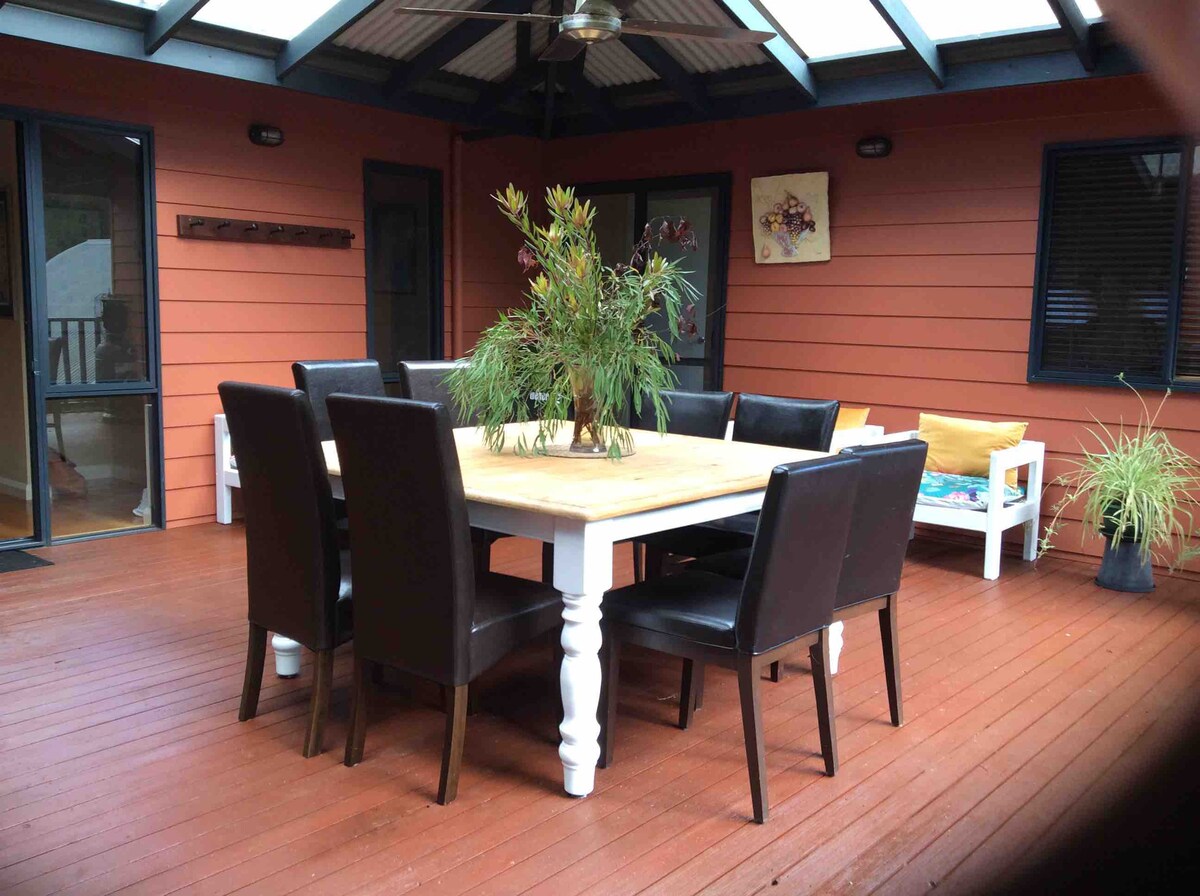 Close to the Margaret River and Margaret River Township. Great location and large gardens. A private self contained quiet house, master bedroom with en-suite, 2nd bedroom with queen bed, 3rd bedroom with one double and 3 single bunks, family bathroom, laundry, open plan living/dining/kitchen with log burner. Close to the river and swimming holes, walking, bike and bush trails. A beautiful 10 minute walk along the river into town. This property is ideal for couples, families or small groups.