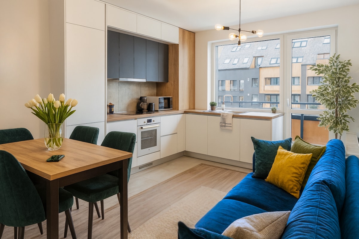 Laipni lūdzam mājīgajā atpūtā Brašovā! Šis pilnībā aprīkotais 1 guļamistabas dzīvoklis apvieno komfortu un stilu, kas ir ideāli piemērots relaksējošai atpūtai. Atrodas tikai 15 min attālumā no pilsētas centra un 5 min attālumā no tirdzniecības centra Coresi, un tuvumā ir daudz lielveikalu. Izbaudiet dabiskas faktūras, siltu apgaismojumu un visu, kas nepieciešams, lai izbaudītu mājokli. Ideāli piemērots pāriem, ceļotājiem vienatnē vai ģimenēm (dīvāngulta viesistabā un bērnu parks blakus ēkai).