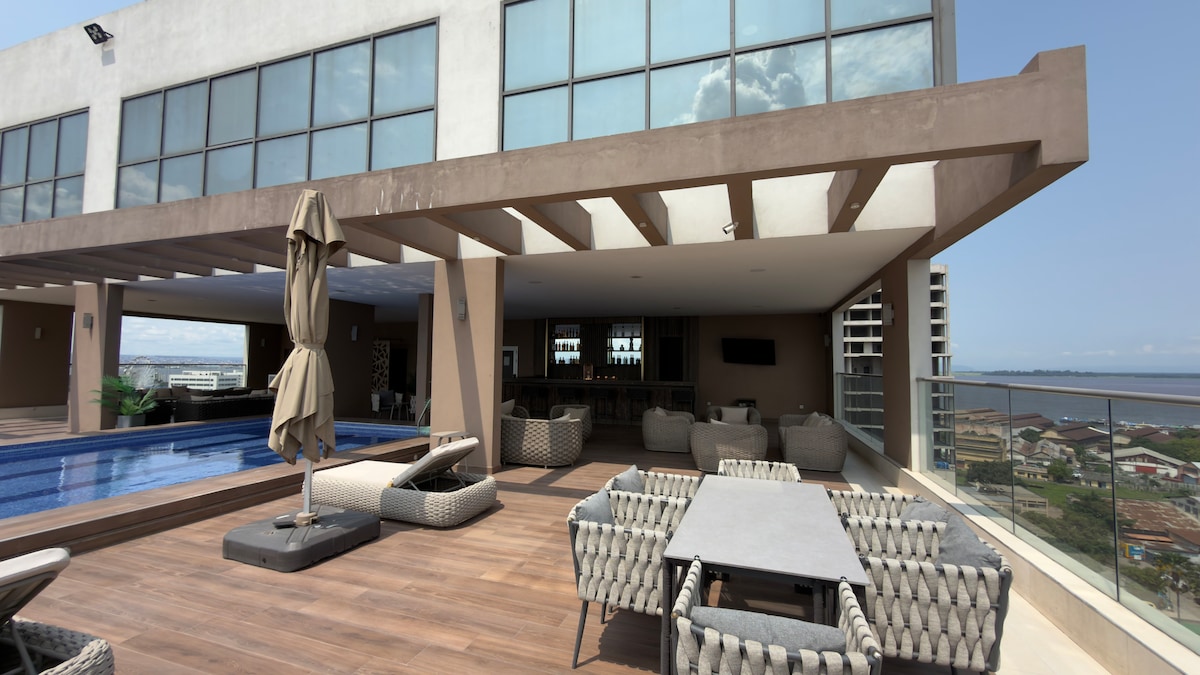 Jumta baseins ar Riverview 3 guļamistabu dzīvokli