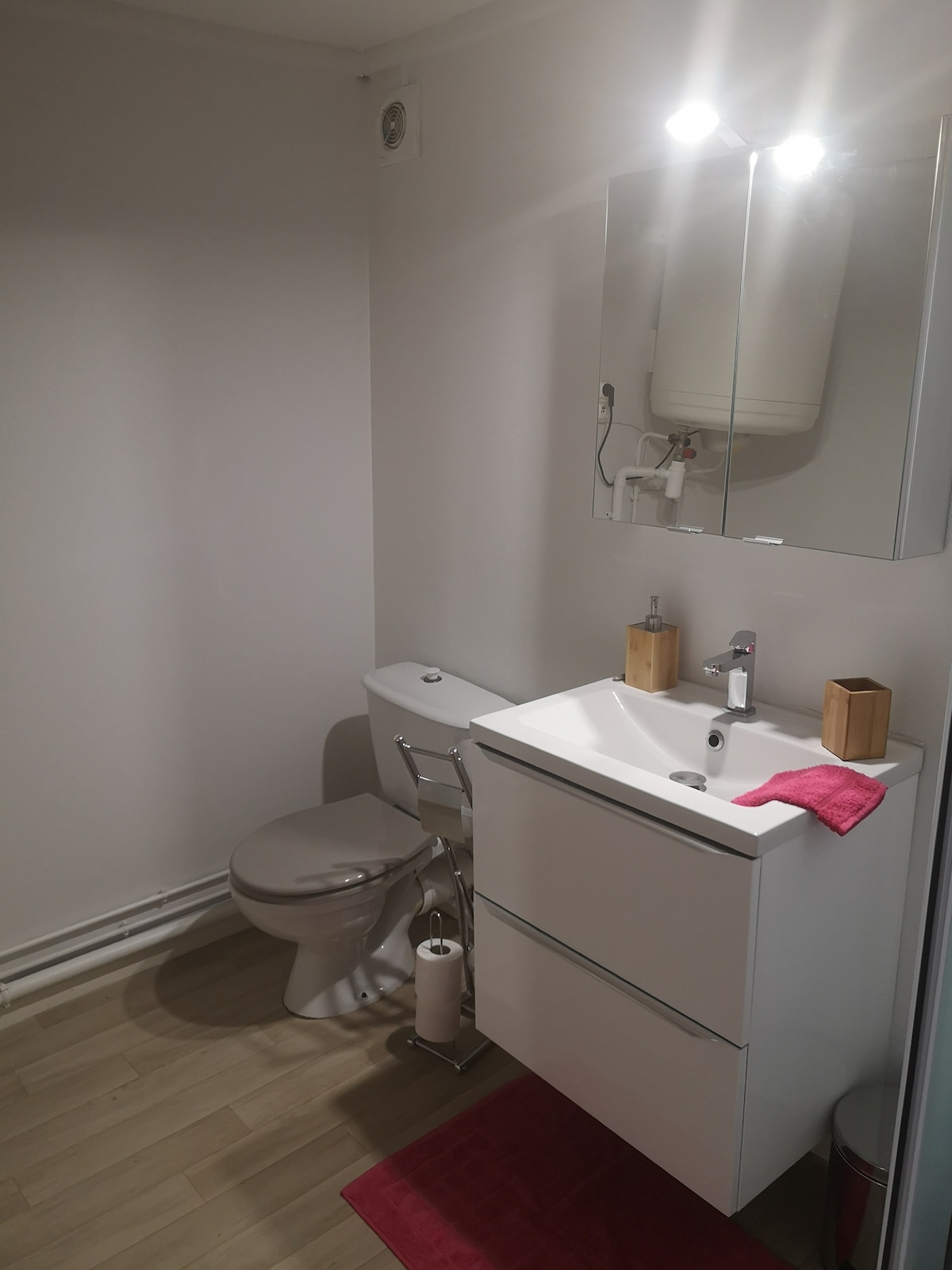 Jauna studija ar gaisa kondicionētāju, kas atrodas mūsu dzīvojamās mājas grīdā. Ļoti kluss, ideāli piemērots ģimenei ar bērniem, pārim vai strādniekam ceļā, kas atrodas pie Moulins vārtiem 3 km attālumā Studijas aprīkojums: mikroviļņu krāsns, Senseo kafijas automāts (pākstis nav komplektā), tējkanna, keramikas plīts, ledusskapis un augstais krēsls. Viesistaba ar dīvāngultu, kā arī pārveidojamu BZ dīvānu. Ir pieejama gultasveļa un dvieļi. Ieeja mājoklī pa neatkarīgām durvīm. Privāta un droša autostāvvieta
