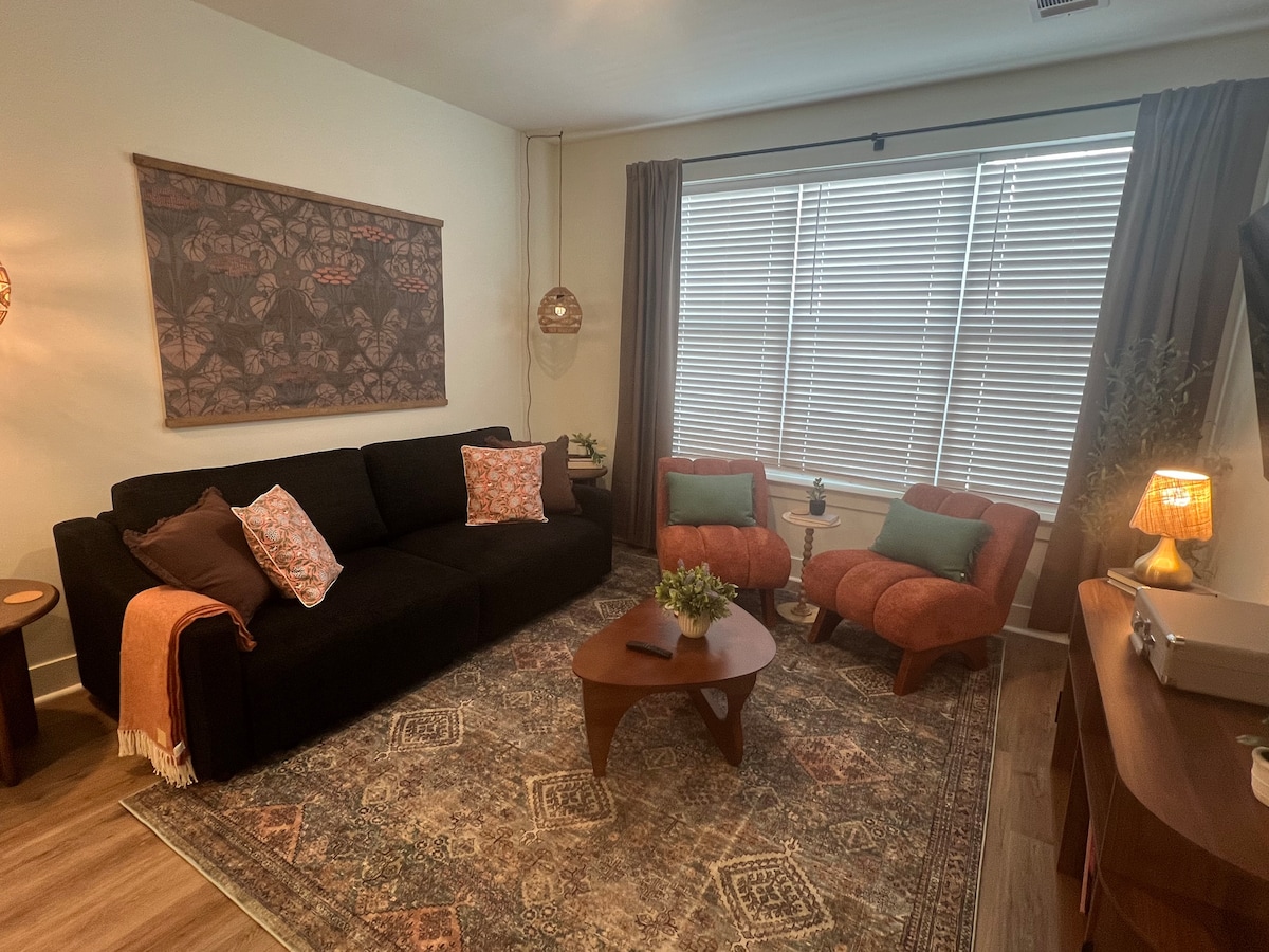 Izbaudiet stilīgu piedzīvojumu šajā centrā esošajā dzīvoklī pašā Nešvilas sirdī. Šis 2 gultu mājoklis ar piepūšamo matraci atrodas Gulch View apkaimē, kas ir viena no Našvilas pieprasītākajām vietām. Minūtes līdz mūzikas vietām, iepirkšanās, naktsdzīvei un neticamiem restorāniem! Iekļauts privāts balkons, apsildāms kopienas baseins un fitnesa centrs. BEZMAKSAS autostāvvieta garāžā, kas savienota ar ēku. Viedtelevizori gan viesistabā, gan guļamistabā + atskaņotājs un albumi.