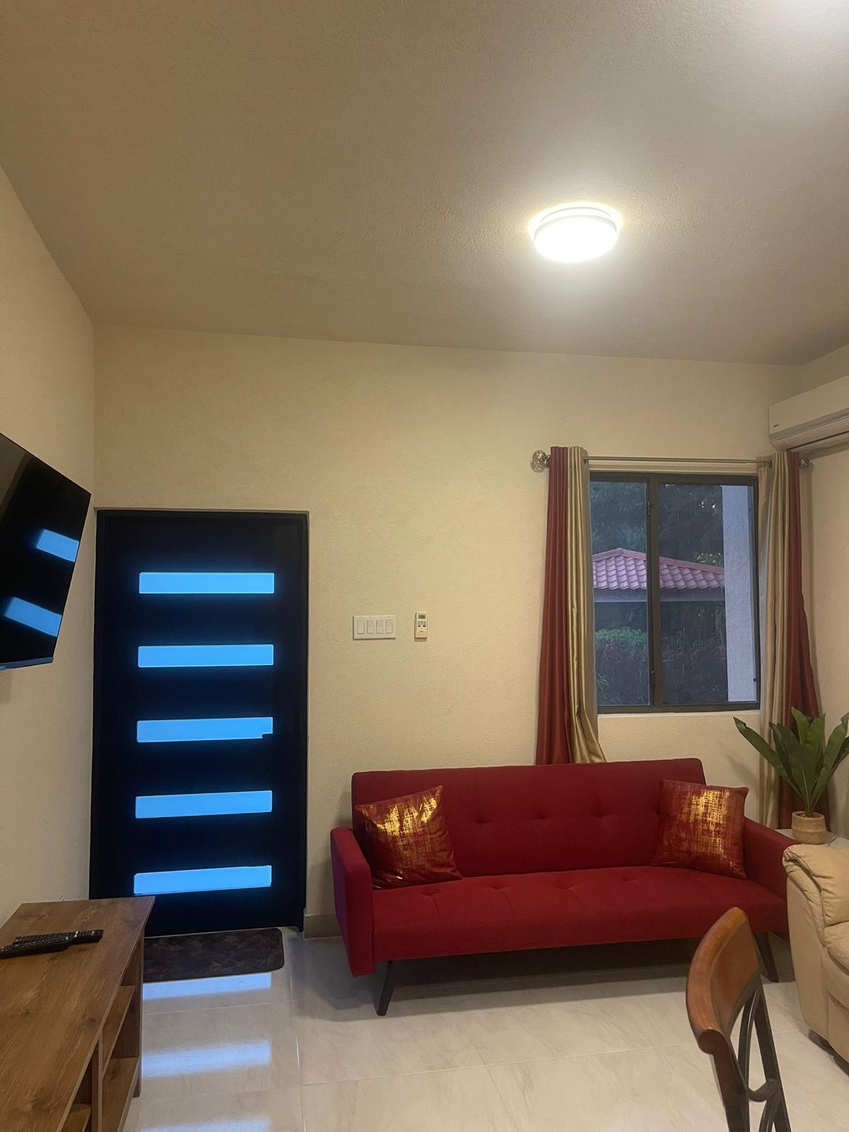 Mājīgs studijas tipa dzīvoklis aiz privātas dzīvesvietas klusā apkaimē, kas atrodas tikai dažu minūšu attālumā no brīnišķīgās zilās Karību jūras, dzīvīgas naktsdzīves, grezniem restorāniem un daudzām citām papildērtībām. Īpašumā ir pilnībā aprīkota virtuve, veļas mazgājamā mašīna, kā arī bārbekjū. Telpa ir gaisa kondicionēta, un tajā ir divguļamā gulta, kā arī futons, kas salokāms vienguļamajā gultā. Dzīvoklī ir seifs.