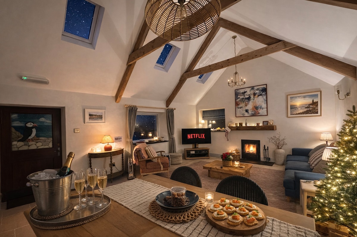 Romantiska Pembrukšīras kotedža skaistā 3 akru teritorijā ar pirti, dabisku pelddīķi (atkarīgs no lietus), spēļu istabu un kajakiem. Kalnu pastaigas uz sliekšņa, satriecošas pludmales un pastaigas pa klintīm tuvumā. Stargaze no ērtas divguļamās gultas. Iekārtojieties pie malkas plīts (bezmaksas malka). Liela vannasistaba ar vannu, dušu un apsildāmu grīdu. Labi aprīkota virtuve ar kafijas automātu. Segta āra atpūtas zona ar ugunskura vietu un grilu. Šķiedras internets, viedtelevīzija (Netflix utt.). Laipni gaidīti 2 suņi ar labu uzvedību.