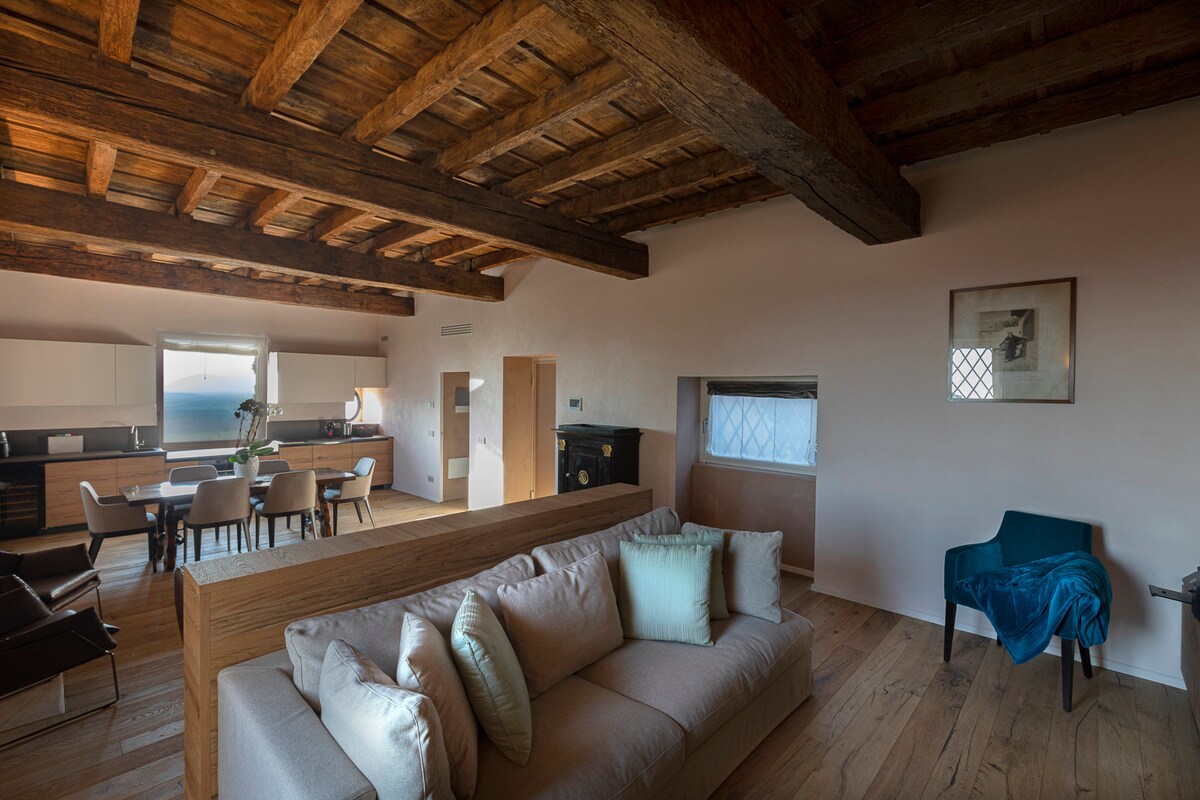54 kvadrātmetru dzīvoklis ar tiešu piekļuvi baseinam un dārzam, no kura paveras panorāmas skats uz Gardas ezeru. Izcila un privāta atrašanās vieta. Dārza un baseina izmantošana, privātums un atpūta lielajās ārtelpās. Mūsdienīga būvniecība no 2015. gada. Privāta un neatkarīga ieeja, plaša autostāvvieta. Stingra uzkopšana. Pilnīgs privātums. Atļauti mazi mājdzīvnieki.