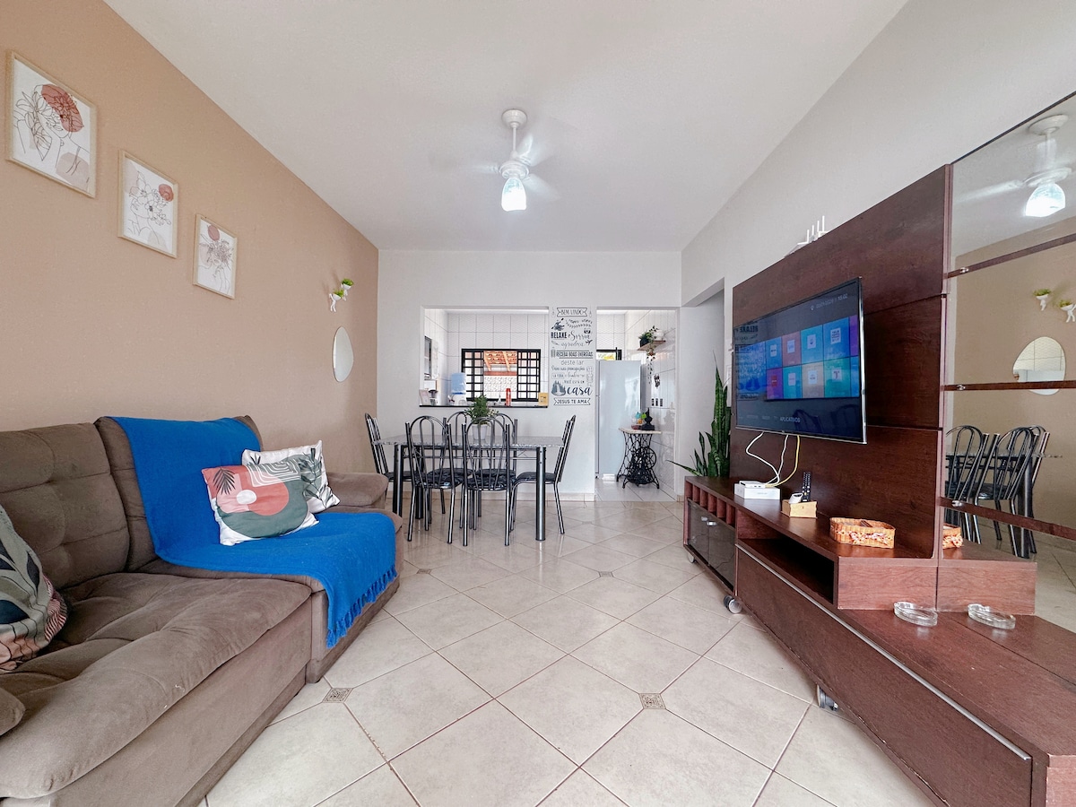 Getagem de Tranquilidade em Brotas/SP Mūsu teacara piedāvā 1500 m² ļoti zaļas un ērtu māju līdz 16 cilvēkiem ar 3 guļamistabām, 2 vannasistabām, griestu ventilatoriem, elastīgiem palagiem un spilveniem (bez dvieļiem). Virtuvē ir plīts, ledusskapis, mikroviļņu krāsns, gaisa fritieris un piederumi līdz 16 viesiem. Segta teritorija ar grilu, peldbaseinu un ideālu gaisotni atpūtai. Atrodas 7 minūšu attālumā no centra un Parque dos Saltos. Ideāli piemērots atpūtai kopā ar ģimeni un draugiem!
