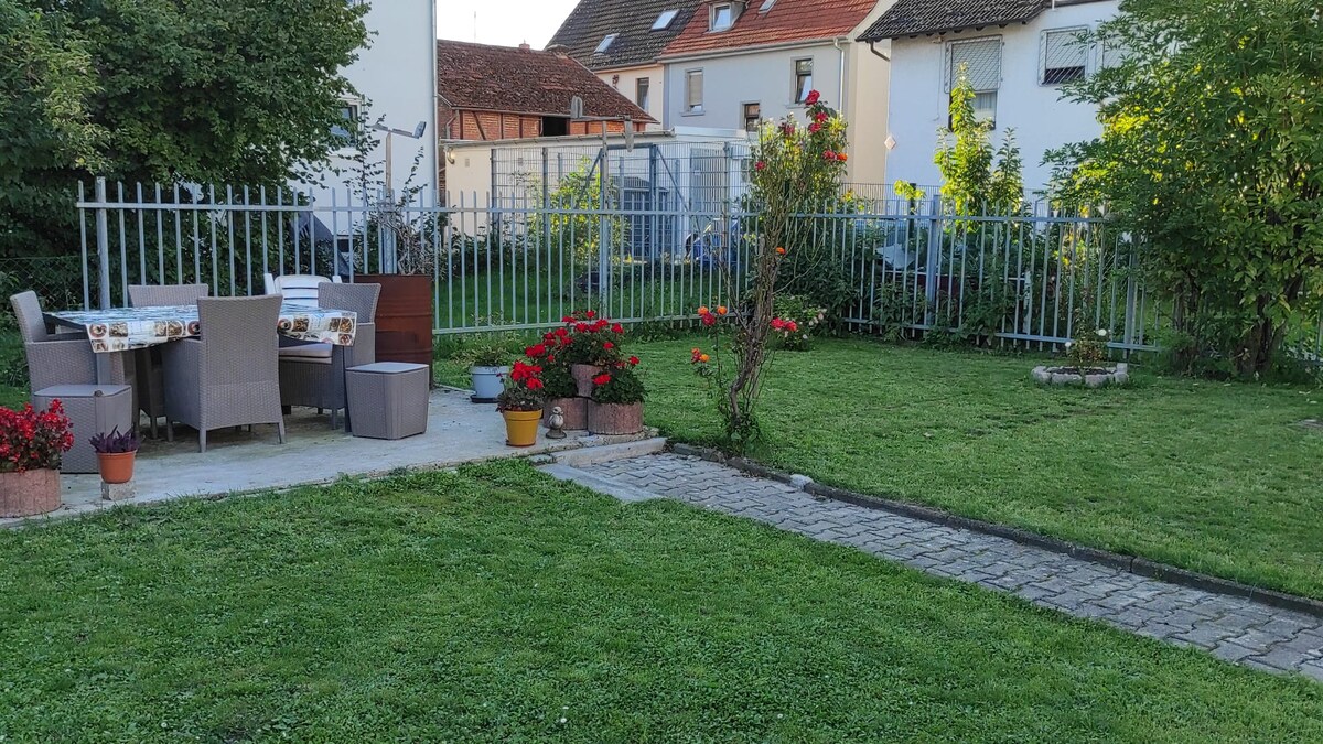 The approximately 78 m² 3-room apartment is fully furnished. Almost all furniture and electrical devices were newly purchased in 2023. The bathroom was newly renovated in early 2023. Bus and train connections to Hanau, Frankfurt am Main or the airport are within walking distance in a few minutes. Dogs are allowed after consultation with the host. Families with children and bikers are welcome. The mopeds can safely park in the yard.