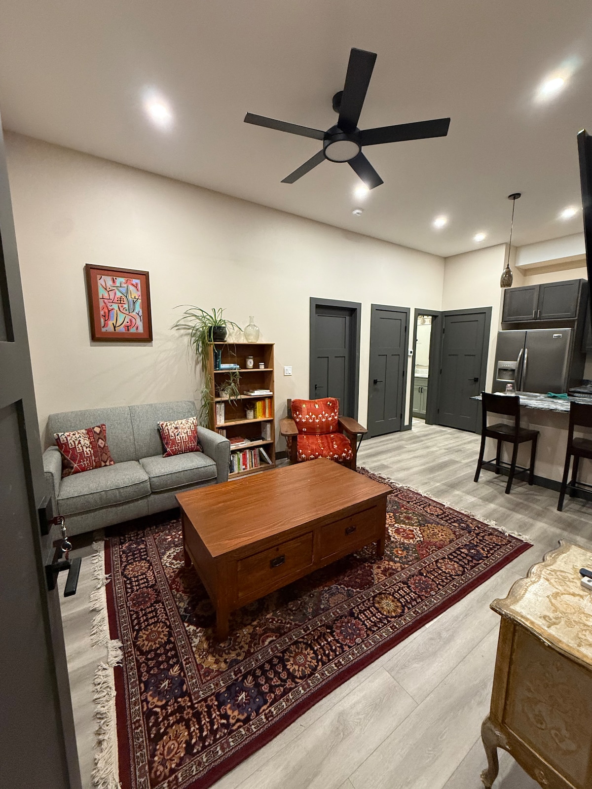Priecājamies būt jūsu supersaimnieki. Tieši pašā Buena Vista centrā, Kolorādo. Ejiet uz veikaliem, restorāniem, takām un River Park, Hot Springs, slēpošanas, velosipēdu, zivju, kāpšanas, skrējiena, airēšanas vai vienkārši atpūtas! Atpūtieties šajā visaugstāk novērtētajā modernajā dzīvoklī. Jaunie īpašnieki Ēriks un Džoela to vada kopš 20. marta. 600sf ar atvērtu stāva plānu un privātu galveno guļamistabu ar papildu gulēšanu koplietošanas telpā - tas viss vienā līmenī. Parādītās kāpnes ir privāta noliktava, kas neietilpst Airbnb.