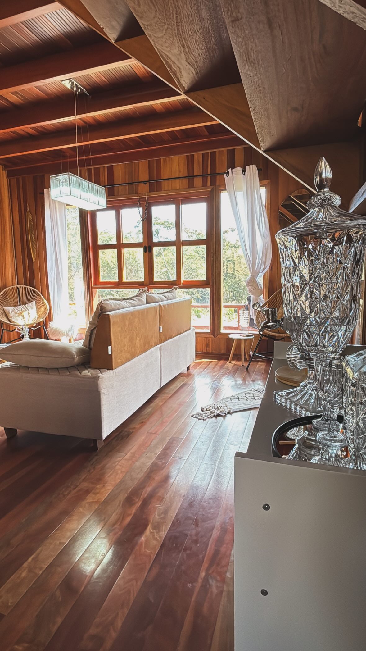 Relaxe neste lindo chalé estilo suiço, feito especialmente para casais que gostam do contato com a natureza. O chalé faz parte de um sítio onde encontramos um pequeno rio e cachoeira particular. Além disso você pode desfrutar de um belo banho de jacuzzi ou banheira na área externa. Possuímos também projetor via wi-fi telão de 100".