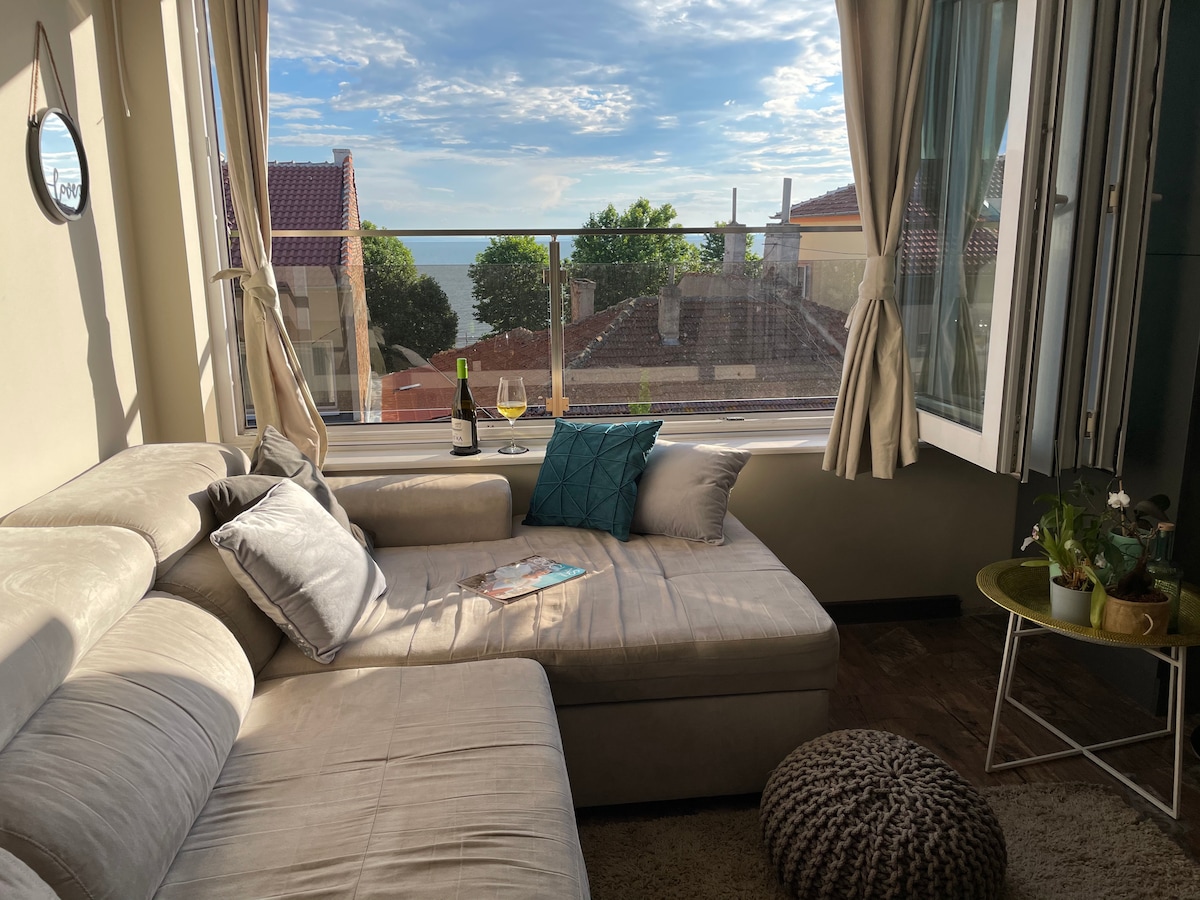 Charming and Stylish New-Built Studio in an Old Building – Varna Center. Step into sophistication with this sleek, newly built studio, perfectly nestled (3rd last floor) within an elegant old building in the heart of Varna. This prime location offers the ultimate urban experience—steps away from the picturesque Sea Garden, rich historical sites, sandy beaches, museums, the Roman Baths, the vibrant port, and an array of trendy bars and restaurants.