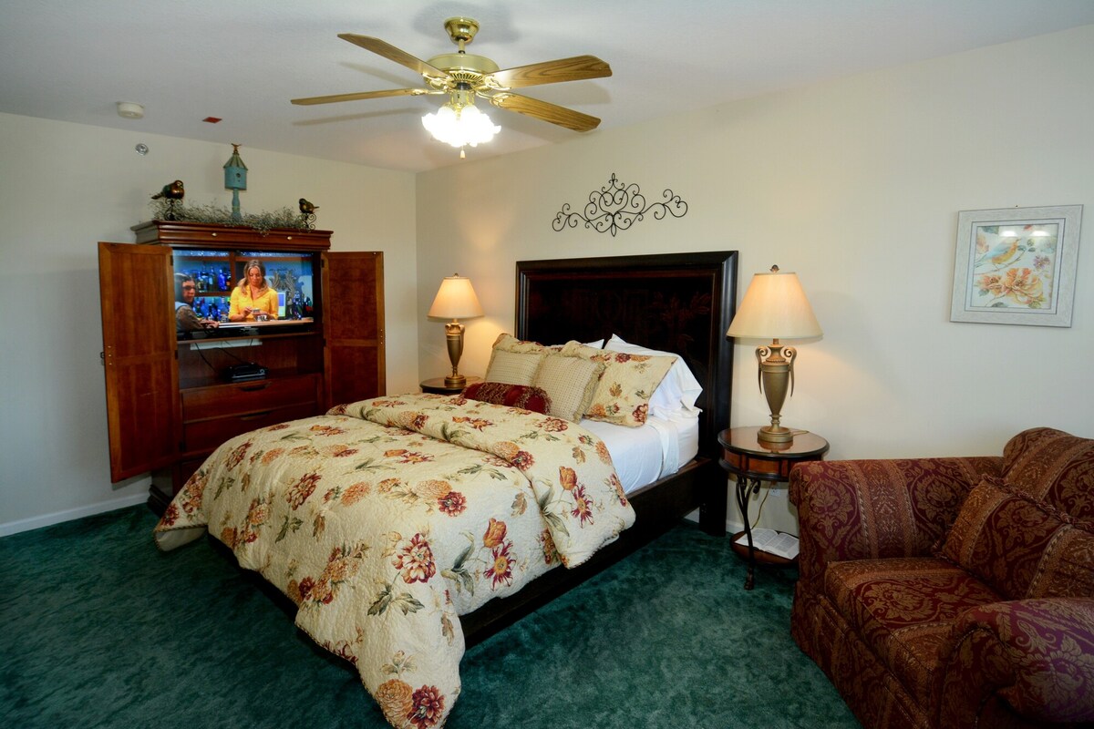 Mūsdienīga elegance gaida jūsu uzturēšanos apbrīnojamajā Brensonā, MO. Serendipity King Bed Suite atrodas lauku apkaimē, kas atrodas prom no Hwy 76 kņadas, bet ir viegli pieejama visām apbrīnojamajām Bransonas atrakcijām. Mēs esam aptuveni 10-15 minūšu attālumā no rosīgās Brensonas "strīpas", Table Rock ezera, SDC, vēsturiskā Brensonas centra vai Branson Landing. Kopā ar savu skaisto, ar papildērtībām piepildīto istabu jums ir mājīga ziedu terase, kas palīdzēs jums atpūsties un izbaudīt Ozark piedzīvojumu.