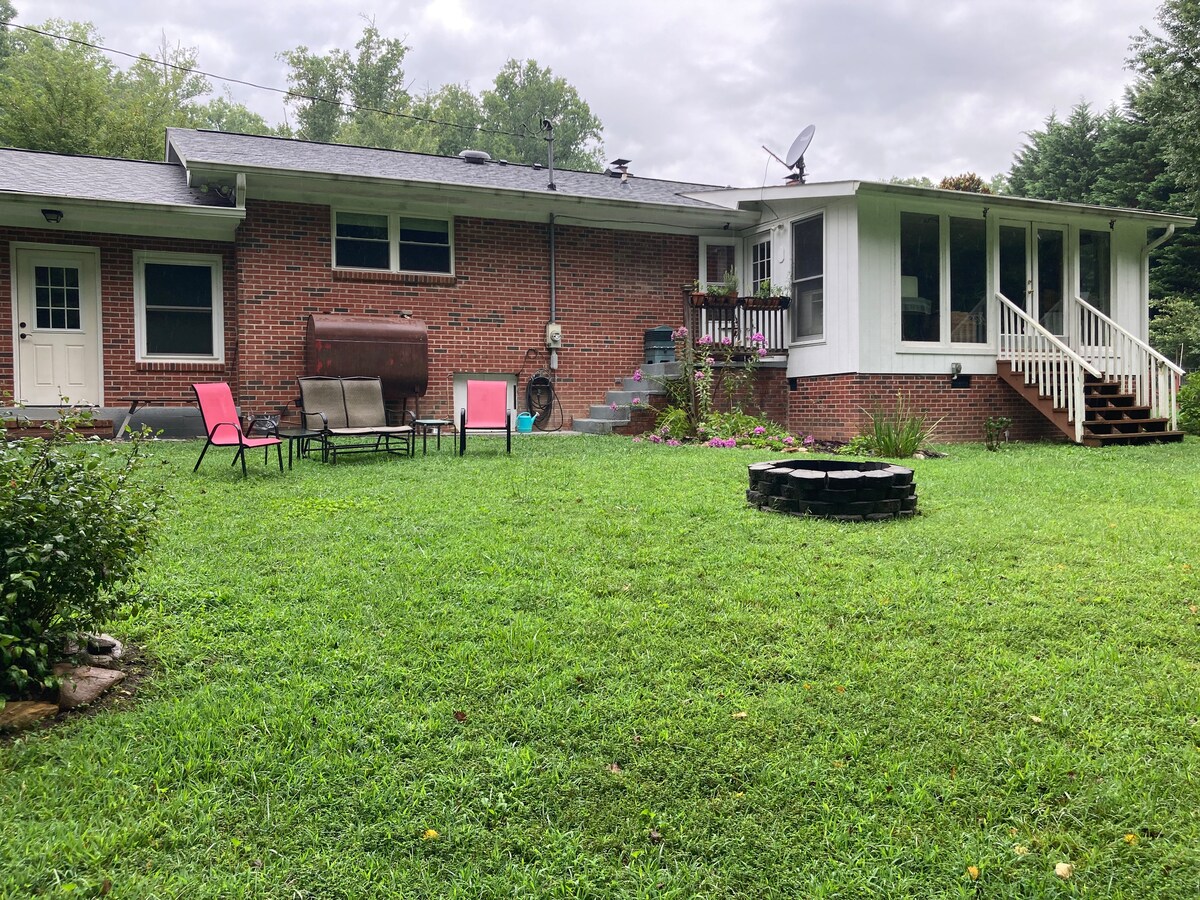Rudens ir skaists laiks, lai apmeklētu - iegādājieties mūsu mākslas un senlietu veikalus. atrodiet lielisku keramiku. Izbaudiet pārgājienus; vietējo mūzikas/mākslas ainu. Klusa, skaista, privāta telpa ar skatu uz Hibriten kalnu Pilnībā aprīkota virtuve un Weber grils. 20 minūšu brauciena attālumā no Blowing Rock un Parkway un aptuveni 40 minūšu brauciena attālumā no Appalachian štata universitātes un Boone. Dodiet priekšroku divu nakšu rezervācijām nedēļas nogalēs, jo īpaši intensīvākās sezonās