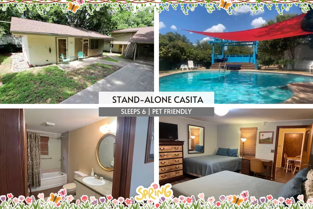Ja meklējat unikālu, neatkārtojamu mājokli, kas iemūžina "Keep Austin Weird" noskaņu, River Ranch Inn ir īstā vieta! River Ranch Inn ar brīvu garu estētiku ir paredzēts tiem, kuri vēlas izbaudīt īstu Teksasas pieredzi. Šim krodziņam ir bagāta vēsture ar ceļojošiem mūziķiem, jautriem piedzīvojumiem un eklektisku mākslinieciskumu, kas jau sen ir padarījis to par populāru vietu. Tā atrodas netālu no Zilā cauruma San Gabrielas dienvidos un ir ideāla vieta, kur ņemt līdzi kajaku, airu dēli un zvejas rīkus!