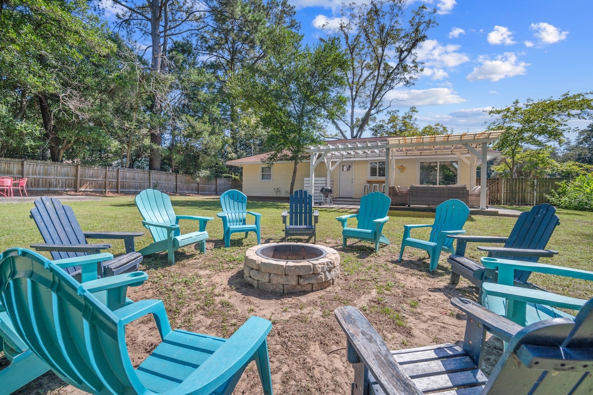 Tikai īsas pastaigas attālumā no Boforta plaukstošās krastmalas un īsa brauciena attālumā līdz pilsētas centra restorāniem/veikaliem/mākslas rajonam un Spānijas sūnu takai - mūsu gaišā, mājīgā kotedža ir veidota, paturot prātā jūsu komfortu un atpūtu. Vēsturiskā rajona sirdī baudiet kafiju uz aizmugurējā klāja, atpūtieties pie ugunskura vietas vai vienkārši atpūtieties iekšā - tā ir ideāla vieta, ko saukt par mājām pēc SC pludmaļu/parku iepazīšanas ar mūsu bezmaksas pludmales caurlaidi. Ideāli piemērots ģimenēm, pāriem un nelielām grupām!