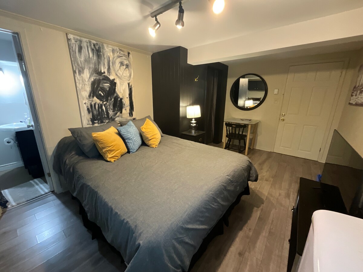 Jūsu ideālais mājoklis gaida Empire Ave. mūsu apburošais Airbnb mājoklis atrodas pašā Sentdžonsas sirdī, tikai dažu minūšu attālumā no Veselības zinātnes slimnīcas, tirdzniecības centra Avalon Mall, SJ lauksaimnieku tirgus un Džordža ielas. Šajā pilnajā mājā var nakšņot līdz 6 cilvēkiem ar autostāvvietu ārpus ielas. Piebraucamais ceļš ir 9,5 pēdu plats, kas atbilst dodge ram, dažiem tas var šķist šaurs. Pieejama veļas mazgātava uz vietas un pilnībā uzlabota virtuve. Īsa pastaiga līdz pārtikas veikaliem, kafejnīcām un citām vajadzībām. Pieejams arī gaisa kondicionieris