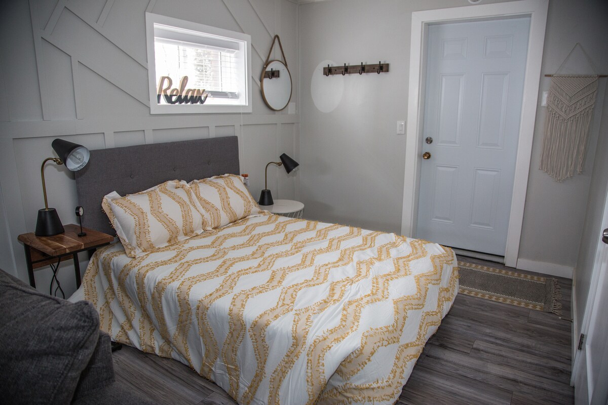 Keep it simple at this peaceful and centrally located place near most amenities. Tucked away right off of the Kingsway, you are only a 5 minute drive to the Downtown core and most retail amenities. This in law suite will provide you with a private and cozy stay. The unit features a kitchenette with a mini fridge, oven/stove, microwave, toaster, and Keurig. It also includes a bathroom, double bed, TV and Wifi. THIS UNIT IS ENTIRELY PRIVATE (Studio sized) and features self check in at any time.