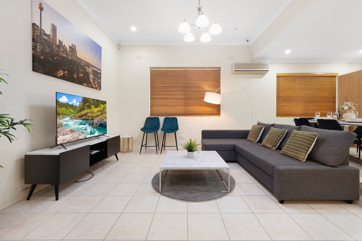 Indulge in a relaxed and comfortable stay in this modern 2 bedroom, 2 bathroom Burwood apartment. We offer two bedrooms, an ensuite, a second full bathroom and a pull-out sofa bed. You’ll also have a fully equipped kitchen, 3 air conditioners, and a smart TV to unwind. Free secure parking is included, with one dedicated car space in the garage. All walking distance from Burwood Chinatown, cafes, restaurants and shops. Enjoy convenient public transport and 12 minute train ride to Sydney CBD.