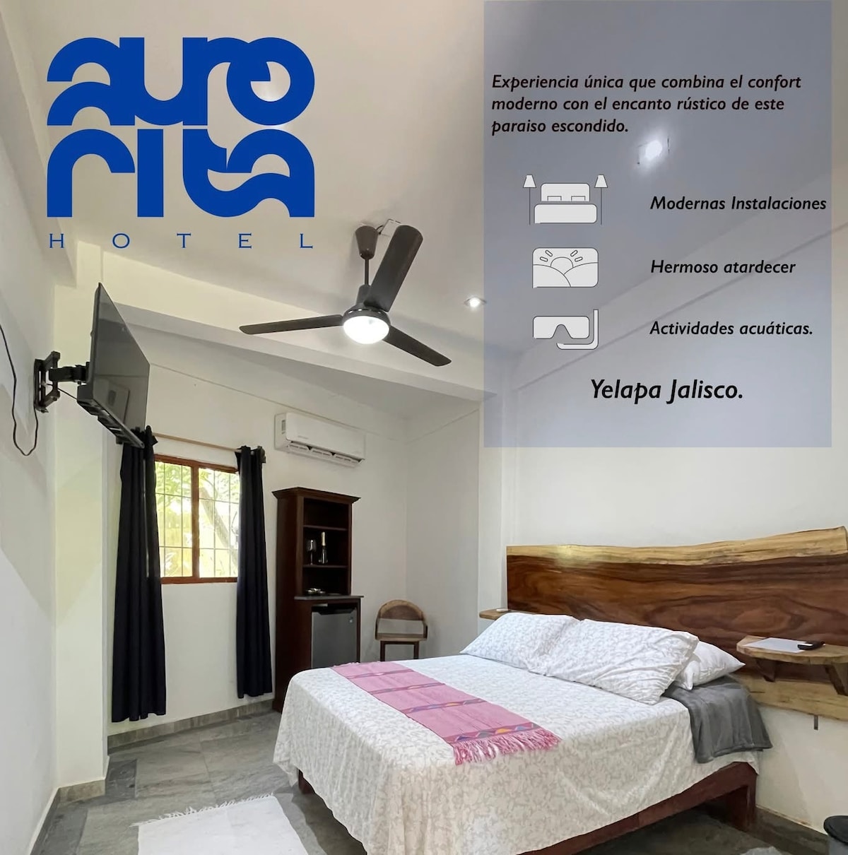 Tu habitación equipada a 5 minutos de la playa! Aurorita te ofrece 4 habitaciones confortables, listas para descansar y relajarte en la paradisiaca Yelapa. Habitación #4 y #3 *Cama para dos personas y una Individual, con cocineta, baño completo, TV y A/C Habitación #2 y #1 *Equipada para disfrutar en pareja , con baño completo, TV y A/C