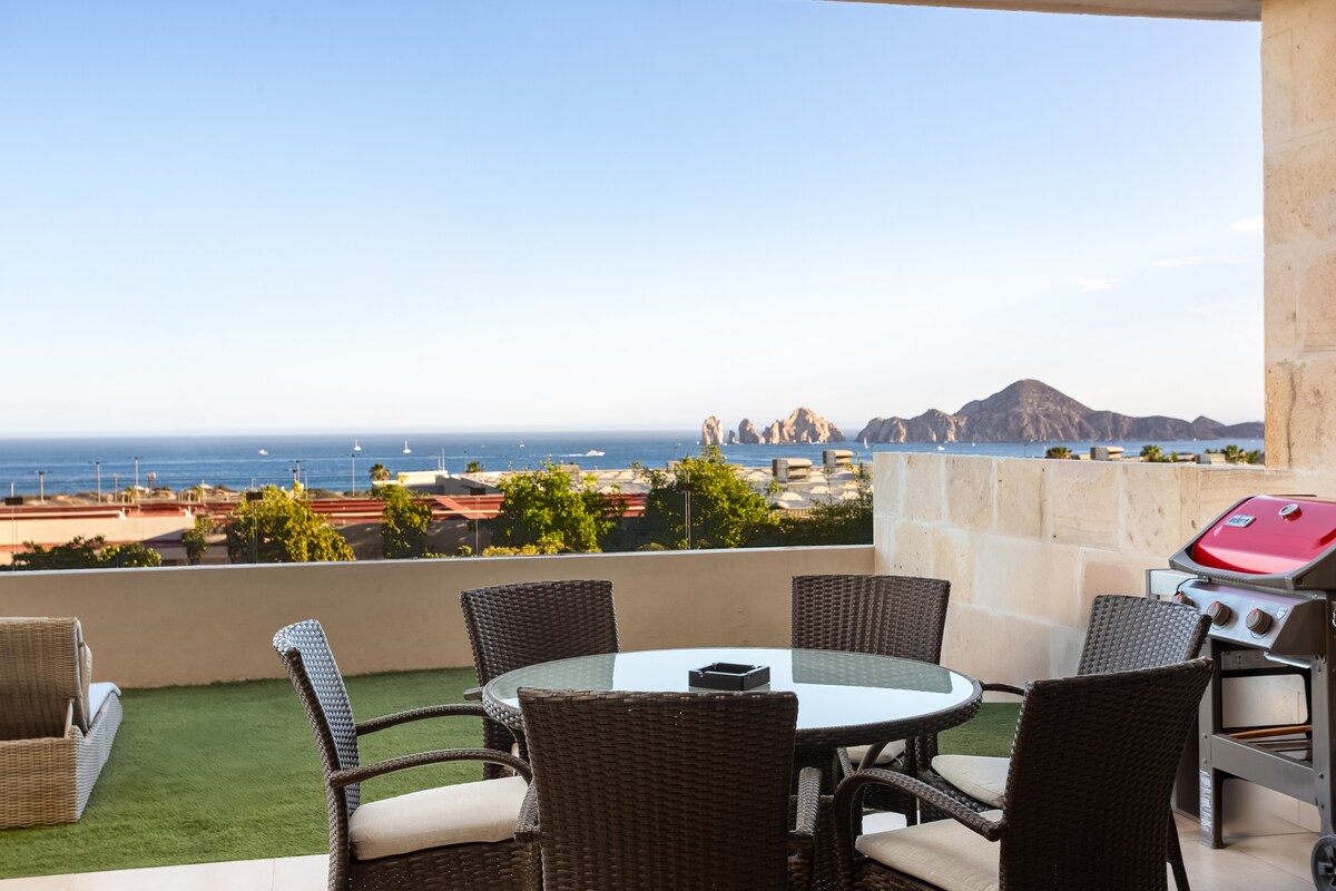 Welcome to your spacious Cabo getaway — a modern 3BR condo with mountain & city views, perfect for families and groups up to 9. Enjoy indoor-outdoor living with a large private balconies, open concept living/dining, and pool access. Just 1.5 miles to the Marina, restaurants & nightlife — peacefully tucked away for relaxation. ✅ Fully Equipped Kitchen ✅75 inch smart TV - w/ Netflix 4K+HDR ✅200 Meg Internet ✅24hr Security ✅Private Assigned Parking ✅Filtered Water Dispenser ✅Coffee ☕️ and Tea