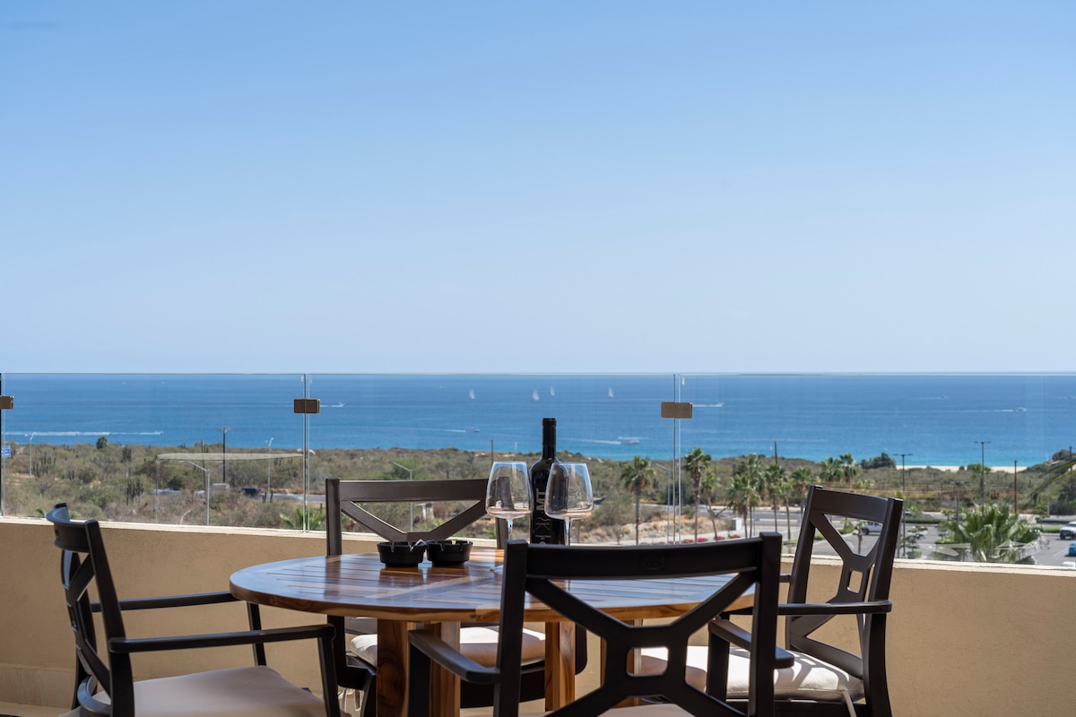 The condo's 180º view lets you enjoy sunrise and sunset at the Cabo Arch from your breakfast-dinner table! Terrace design offers intimacy and escape. Ideal for a romantic stay, home office with paradise views, BBQ dinners with sunset vistas, relaxing hammock siestas, whale-watching while cooking, and sunrise views from bed! Walking access to Cabo's top two beaches and next to The Cape and Thompson Hotel. Please remember, this is a rental condo, not a hotel, and the price reflects that.
