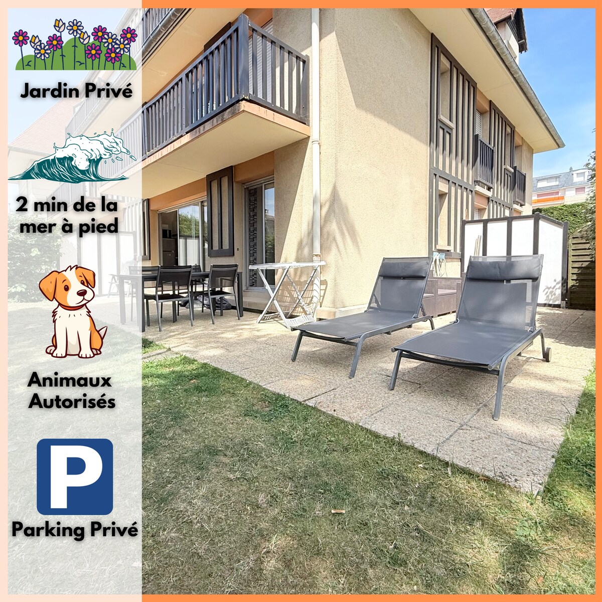 Dzīvoklis ar dārzu un tiešu piekļuvi jūrai. Neatkarīga un ļoti patīkama naktsmītne ar 1 guļamistabu, 1 vannasistabu ar tualeti un dzīvojamo istabu (ēdamistabas zona, virtuvīte, dzīvojamā istaba ar BZ). Dažu minūšu attālumā no talasoterapijas, pilsētas centra un īsas pastaigas attālumā no pludmales. Droša dzīvesvieta (elektriskie vārti, ciparu kods). Ļoti labi aprīkots (Wi-Fi, trauku mazgājamā mašīna, virtuvīte ar plīti un daudzfunkcionālu cepeškrāsni...).
