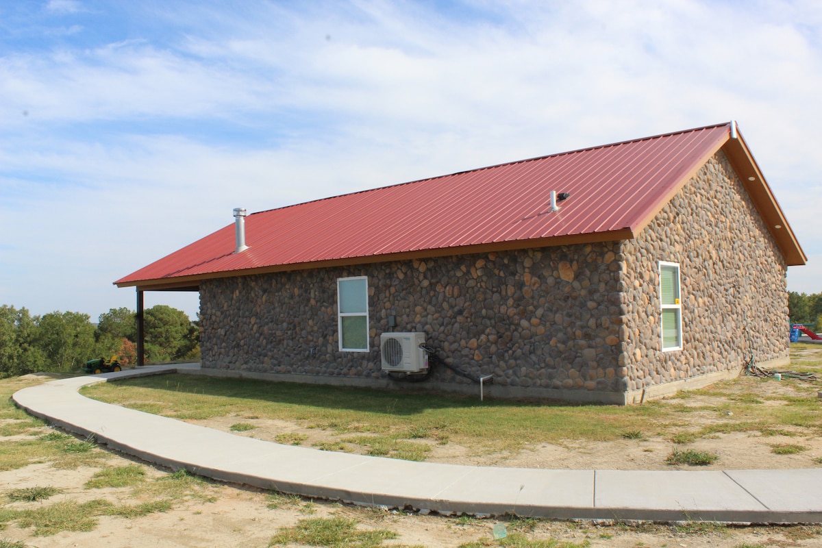 Pārbūvēta virtuve! Miesnieku bloku lete, jauna pastaiga dušā! Atpūtieties šajā mierīgajā, stilīgajā lauku mājoklī. Namiņā ir daudz ēnas un koku, pakavu un ugunskura. Dzīvojamajā istabā ir 2 gultas, no kurām vienā ir izvelkams divvietīgs un ērts ādas krēsls. Ātrs internets, straumējiet iecienītākās TV pārraides un digitālo antenu, vietējos vairāknekā 20 kanālus. Divās guļamistabās ir divguļamās gultas un skapji, 3. guļamistabā ir viena divguļamā gulta ar divguļamo gultu. 4 Sienas gaisa kondicionētāji un radiatori katrā guļamistabā dzīvojamajā istabā a/c blokā ir arī milzīgs sildītājs