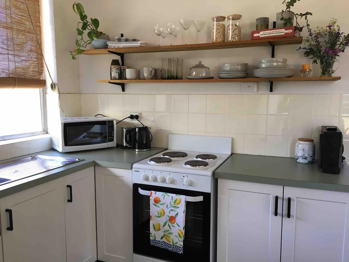 Šī mājīgā telpa ir privāta pusmāja ar atsevišķu ieeju un autostāvvietu ārpus ielas. Piedāvājumā ir plaša atsevišķa dzīvojamā un ēdamistaba un divas guļamistabas, viena ar divguļamo gultu un otrā ar divguļamo gultu (lūdzu, skatiet papildinformāciju). Jūs varat baudīt skaisto dārzu ar lieliskiem kokiem no privātā priekšējā lieveņa, kurā ir grils un āra sēdvietas. Atrodas uz 15 akriem pilsētas malā. Tas atrodas dažu minūšu brauciena attālumā no Orindžas CBD, kā arī īsa brauciena attālumā no Millthorpe Village.
