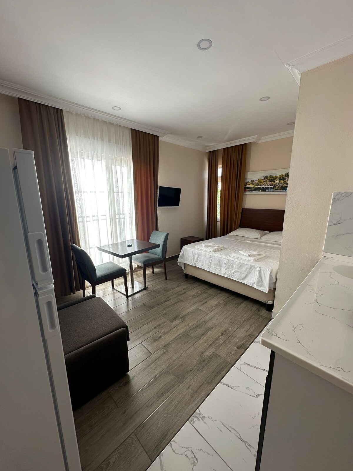 Šis ir mūsu 1 guļamistabas dzīvoklis, kurā ir skaists balkons. Šajā līdzenajā virtuvē un dzīvojamā istabā ir savstarpēji savienotas. Mēs piedāvājam ātrgaitas internetu. Viesistabā ir dīvāns un varētu būt arī gulta. -Vera Suites atrodas 2 minūšu attālumā no Konyaaltı pludmales un netālu no visām kafejnīcām un restorāniem. - Ja nepieciešams, varam pievienot papildu gultu. - Mēs nodrošinām bezmaksas iknedēļas uzkopšanu ilgāk par 5 dienām. - Mums ir reģistratūra un drošības dienests 24 stundas diennaktī. Jūs varat sazināties ar mums jebkurā laikā ar katru pieprasījumu