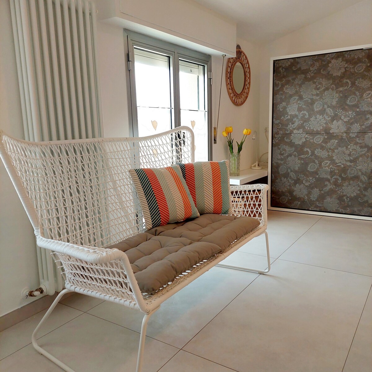 Studija, tikko renovēta, 500 metru attālumā no jūras. Gaiša un praktiska, tajā ir franču ortopēdiskā gulta un gaisa kondicionētājs. Lieliska atrašanās vieta: netālu no jūras, lielveikala un šosejas tirdzniecības centra, kas ļaus ērti nokļūt apkārtnes apskates objektos.