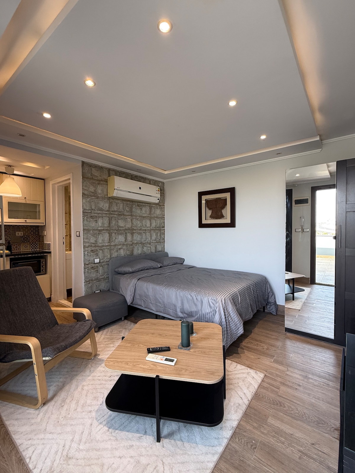 Dodieties uz mājīgu studiju Westown Residence, kas atrodas lieliskā vietā netālu no Sfinksas lidostas, Lielā Ēģiptes muzeja un daudzām maltīšu vietām. Šajā ērtajā, pilnībā mēbelētajā studijā 2 personām ir milzīga terase ar ērtām āra sēdvietām un skatu uz zaļo dabu. Ideāli piemērots pāriem, profesionāļiem vai ikvienam, kas meklē relaksējošu atpūtu. - 10 minūšu attālumā no Sphinx lidostas - 20 minūtes līdz Lielajam Ēģiptes muzejam un piramīdām - 30 min līdz pilsētas centram Atpūtieties, relaksējieties un izbaudiet uzturēšanos!