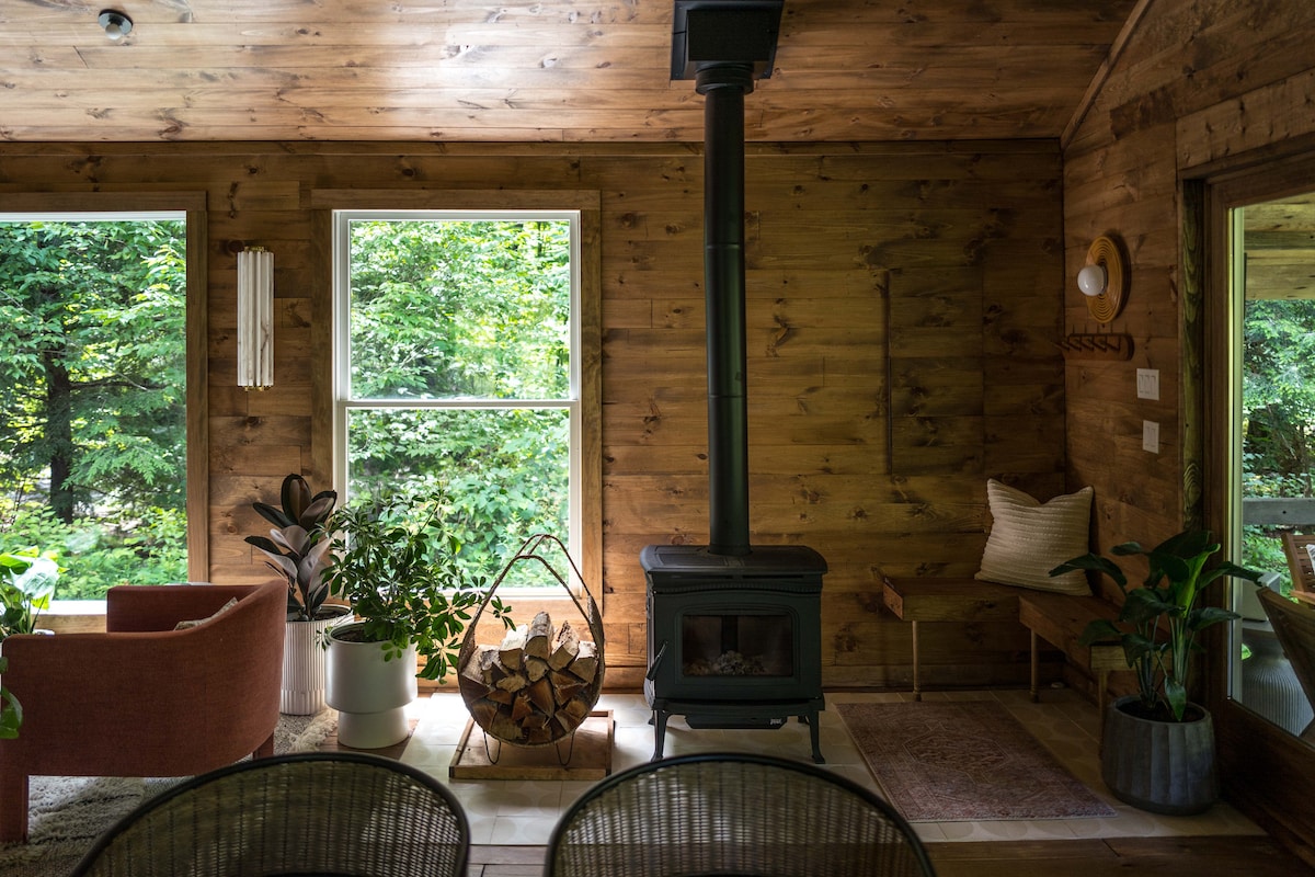Mūsu greznais namiņš ir kas vairāk par Airbnb - tas ir personīgs patvērums, kas veidots, paturot prātā jūsu komfortu un mieru. Šī idilliskā atpūtas vieta, kas atrodas uz 1,5 akriem Katskilas kalnu skaistuma, piedāvā visu, kas nepieciešams relaksējošai atpūtai vai ilgākam uzturēšanās laikam. Izbaudiet modernās papildērtības, mājīgās mēbeles un elpu aizraujošos skatus, kas padara mūsu namiņu par patiesi īpašu vietu. Skatīt vairāk attēlu @the_reve_cabin Vai esat gatavi izbēgt no ikdienas? Rezervējiet mājokli jau šodien.